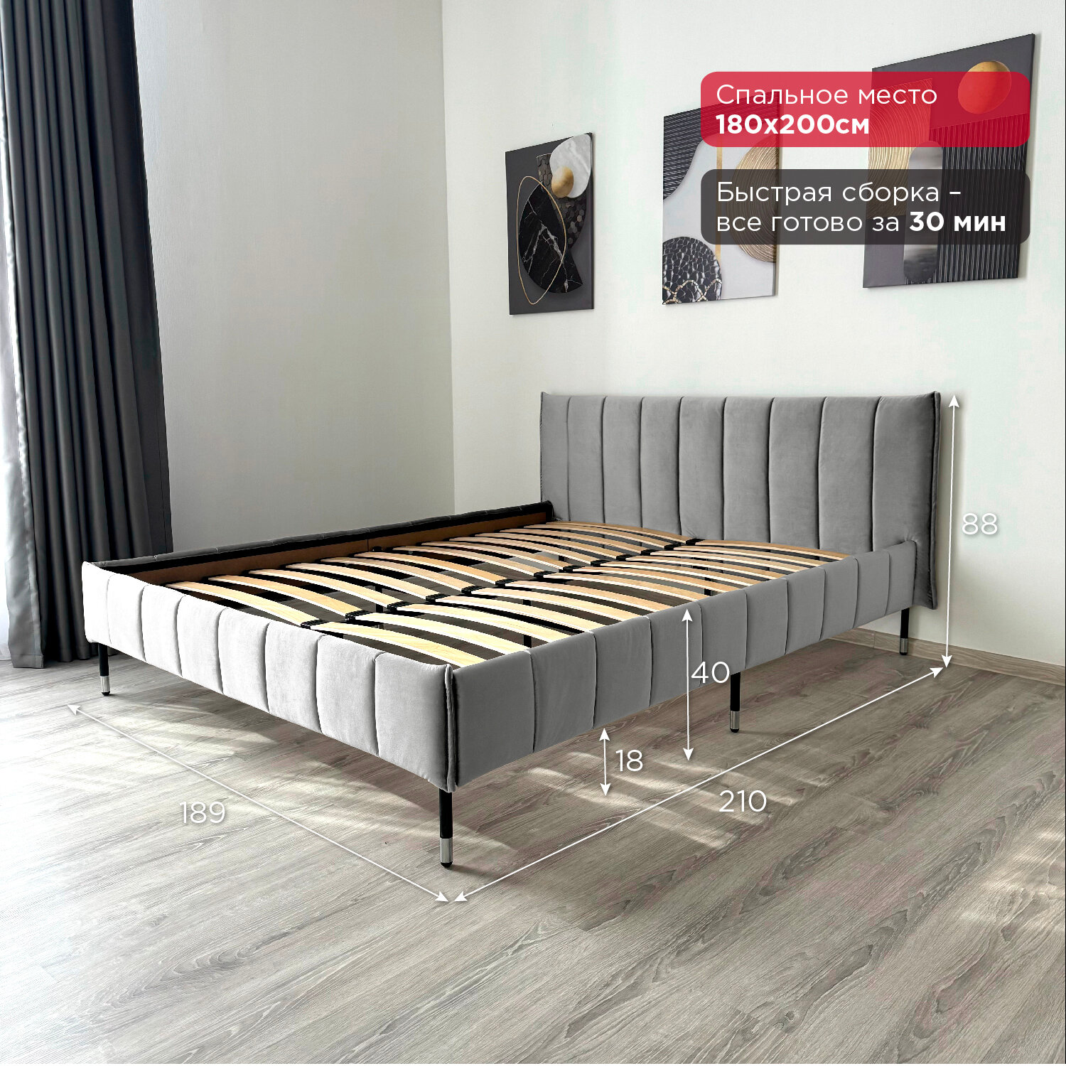 Кровать Redsofa Стелла серебряный Шайн / ножки хром 180х200 с ортопедическим основанием