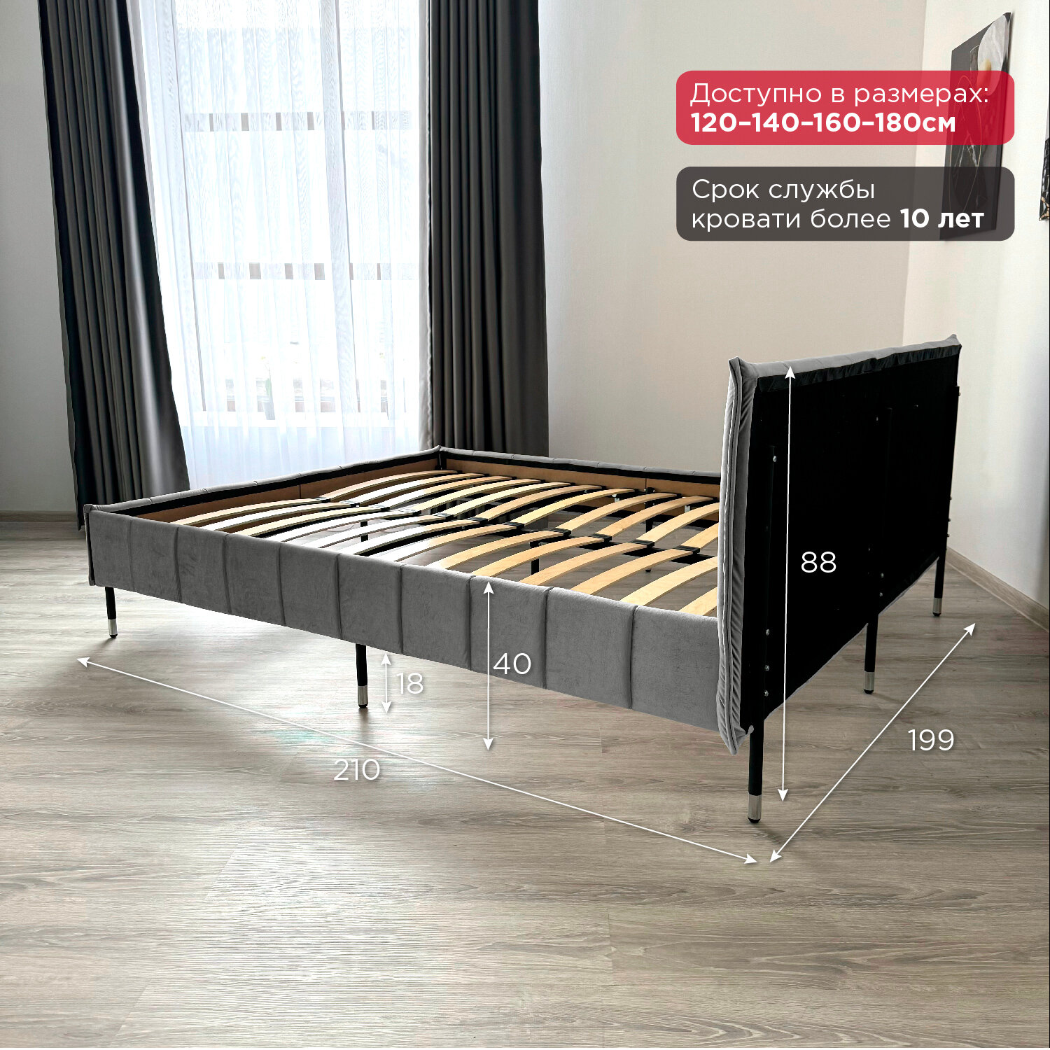 Кровать Redsofa Стелла серый Шайн / ножки хром 140х200 с ортопедическим основанием