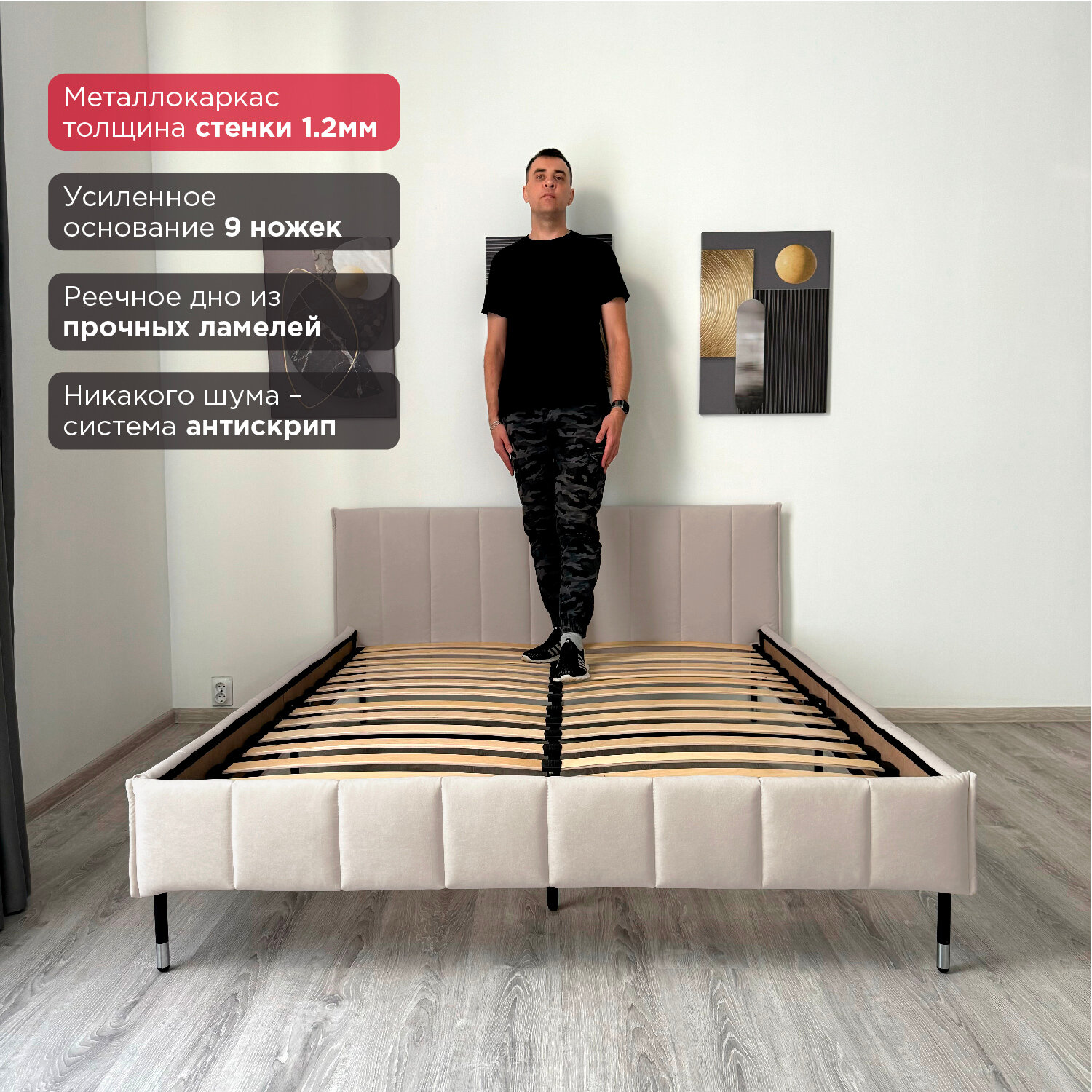 Кровать Redsofa Стелла бежевый Шайн / ножки хром 140х200 с ортопедическим основанием