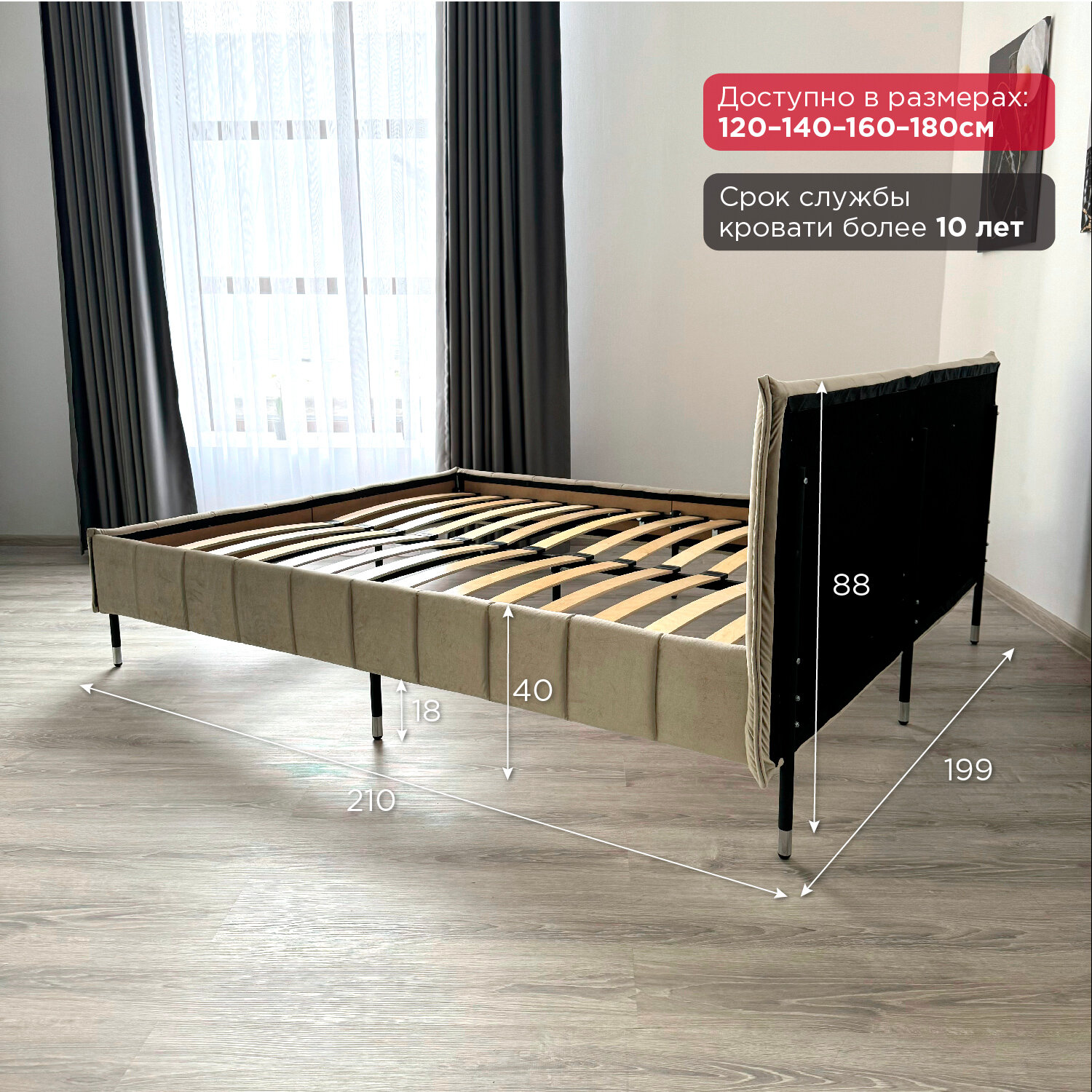 Кровать Redsofa Стелла темно-бежевый Шайн / ножки хром 180х200 с ортопедическим основанием