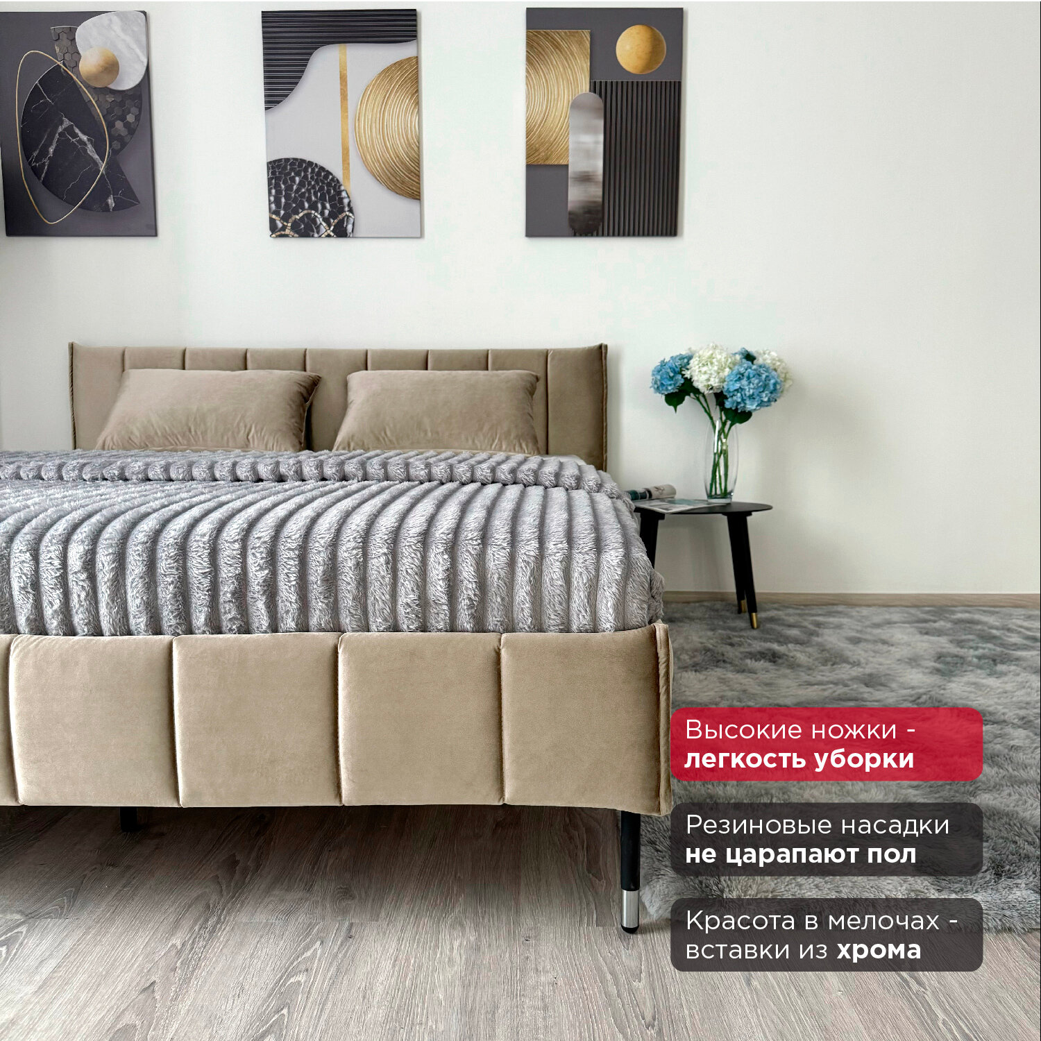 Кровать Redsofa Стелла золотой Шайн / ножки хром 180х200 с ортопедическим основанием