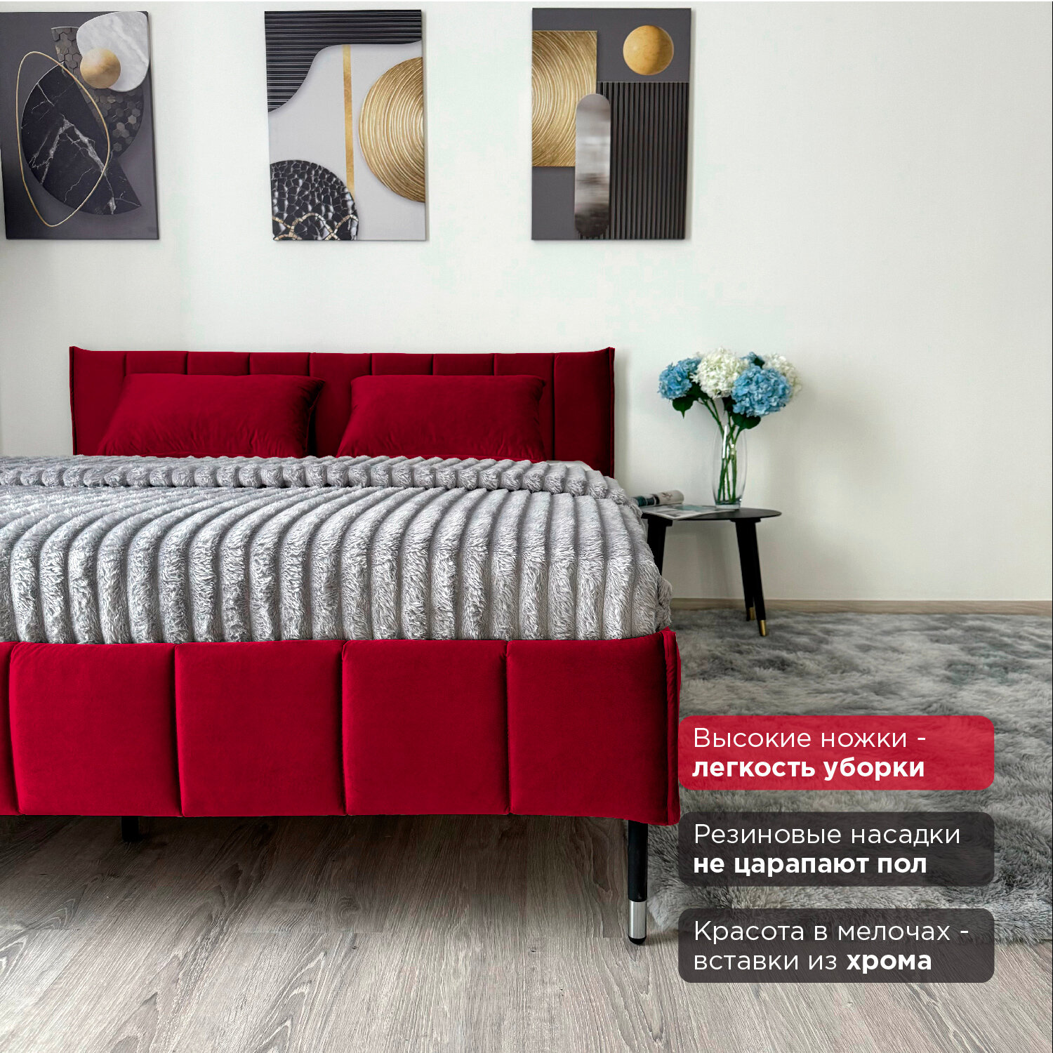 Кровать Redsofa Стелла красный Шайн / ножки хром 140х200 с ортопедическим основанием