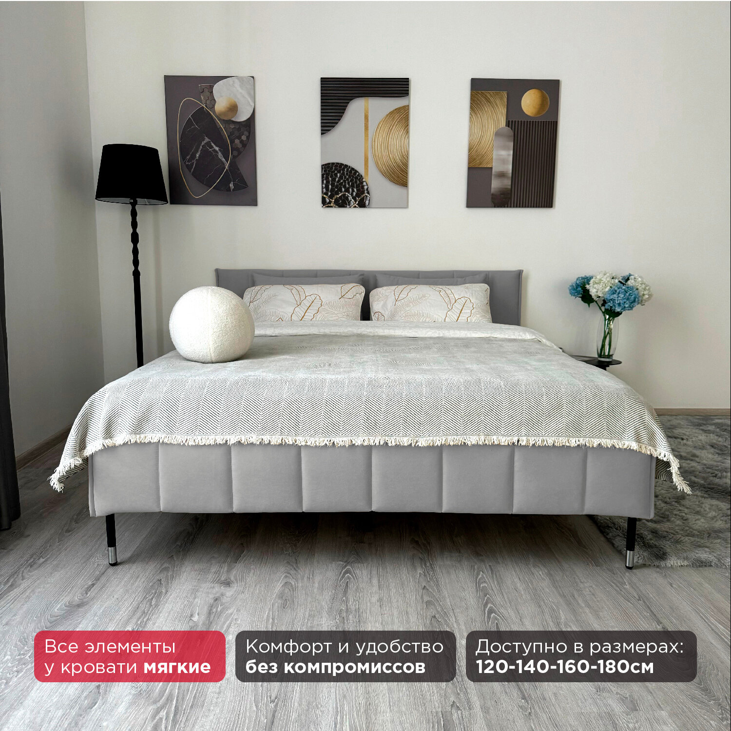 Кровать Redsofa Стелла серый Шайн / ножки хром 140х200 с ортопедическим основанием
