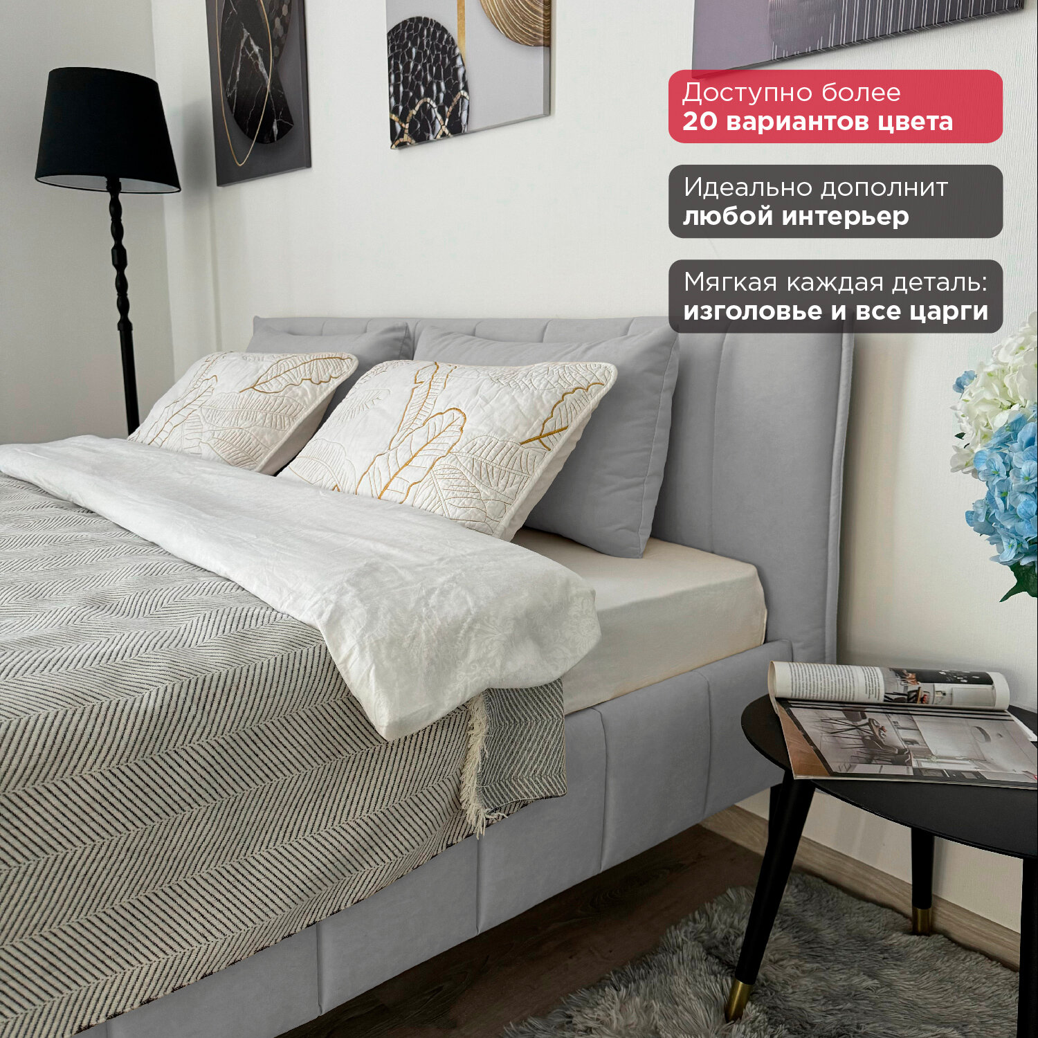 Кровать Redsofa Стелла светло-серый Teddi / ножки хром 140х200 с ортопедическим основанием