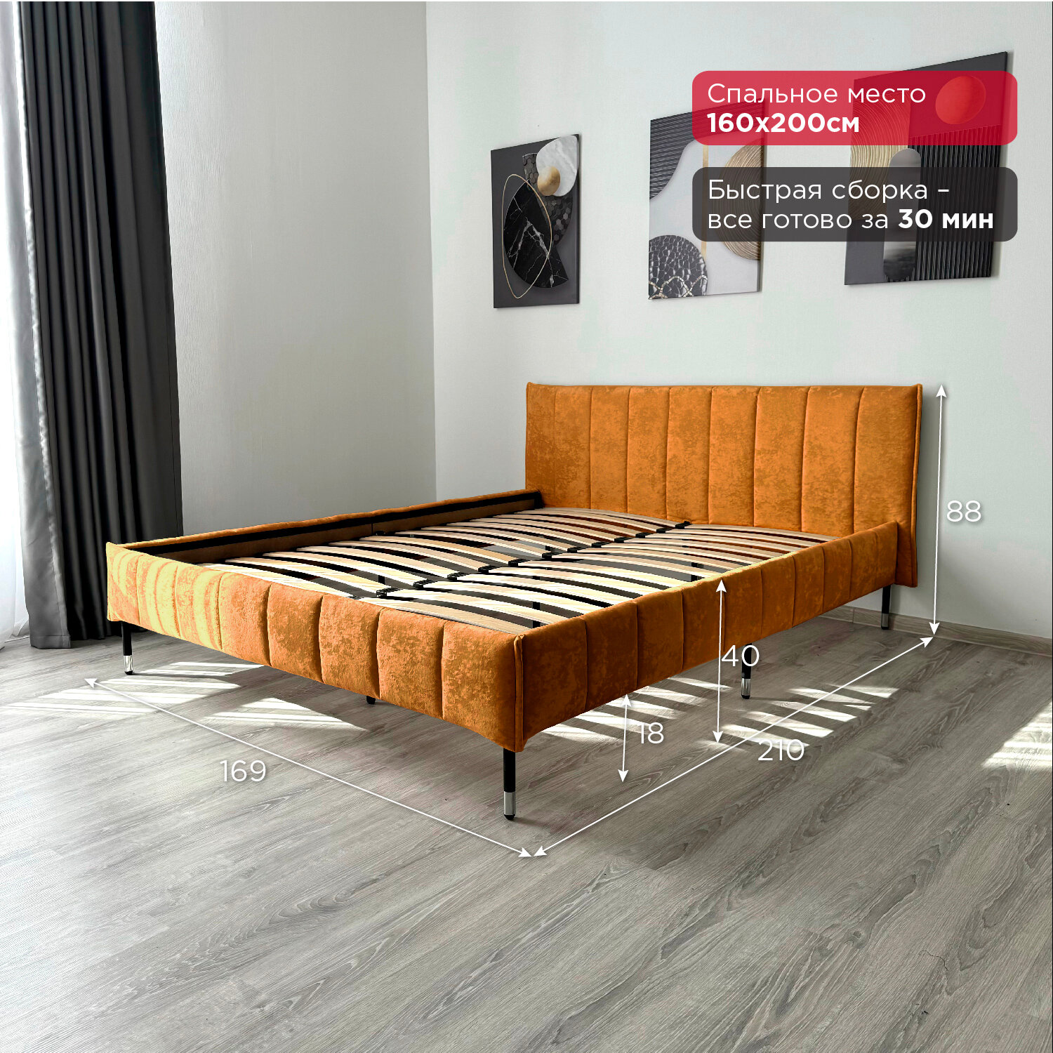 Купить Кровать Redsofa Стелла охра Ocean / ножки хром 160х200 с ортопедическим основанием