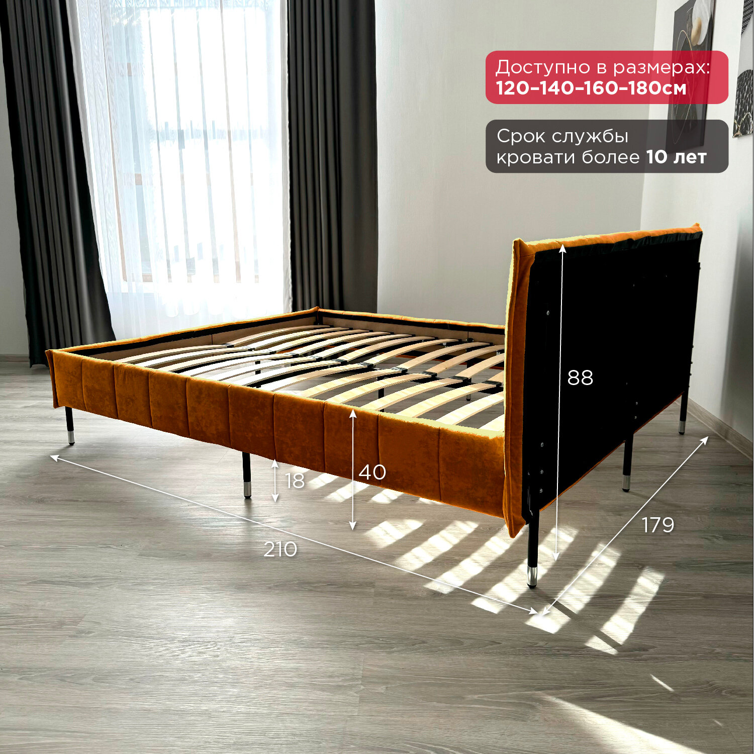 Кровать Redsofa Стелла охра Ocean / ножки хром 140х200 с ортопедическим основанием