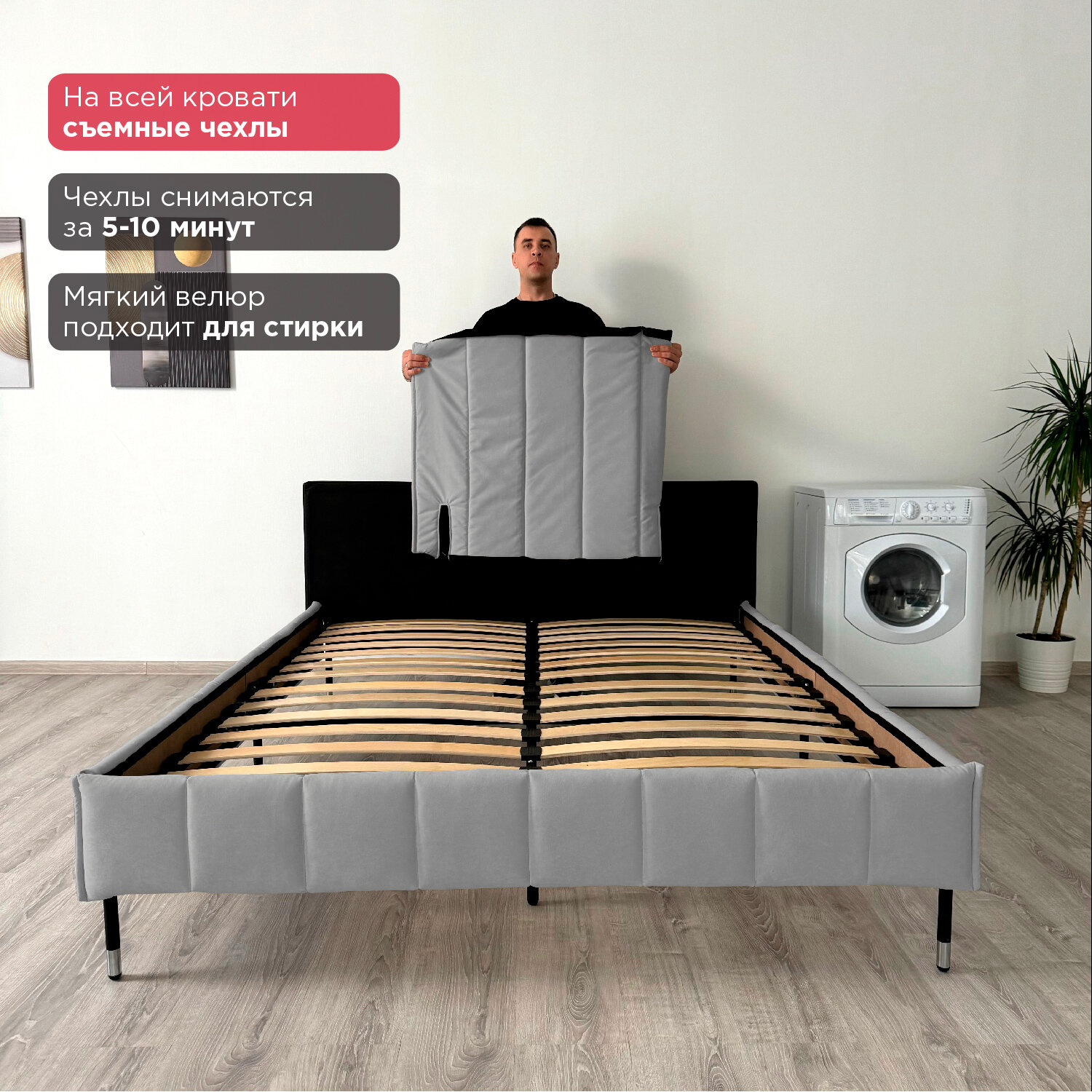 Кровать Redsofa Стелла графит Teddi / ножки хром 160х200 с ортопедическим основанием