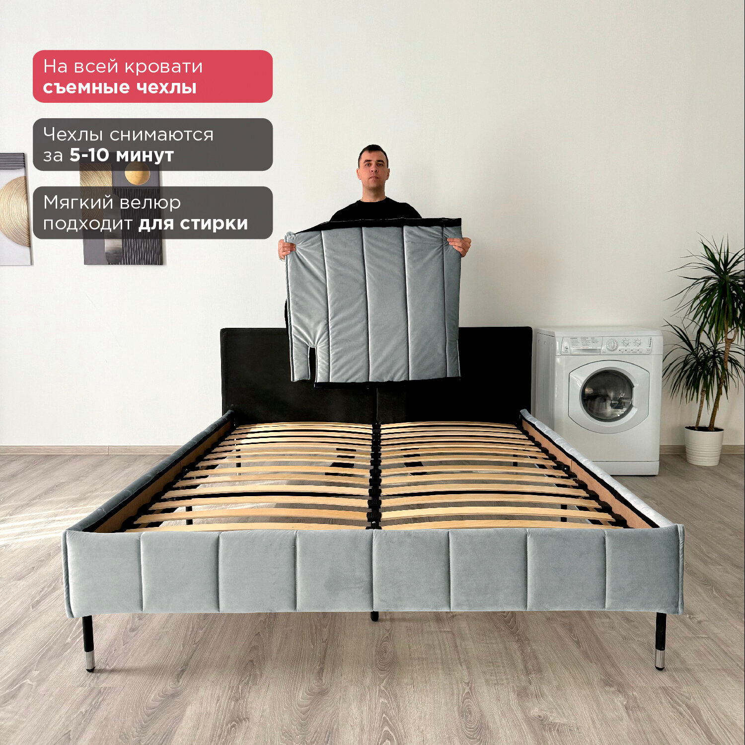 Кровать с матрасом Роза Серая Велюр 160х200