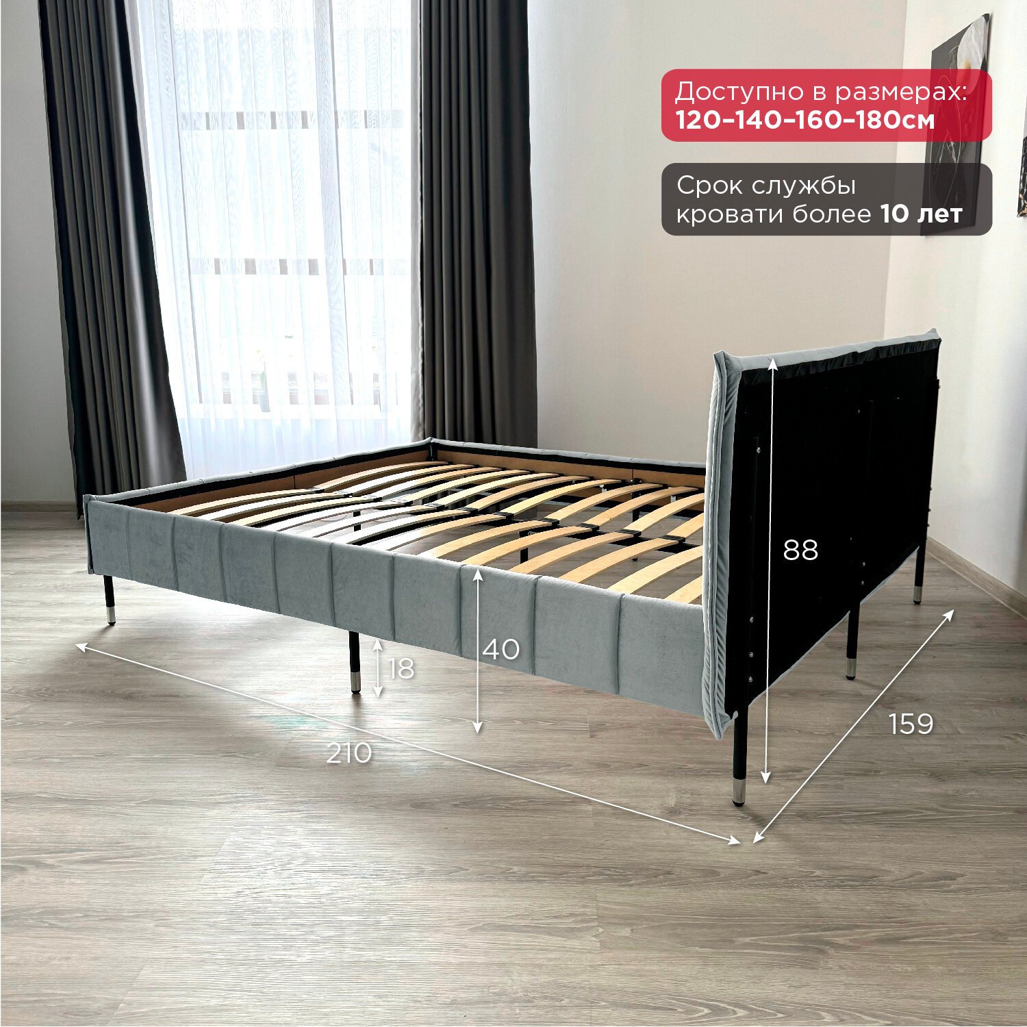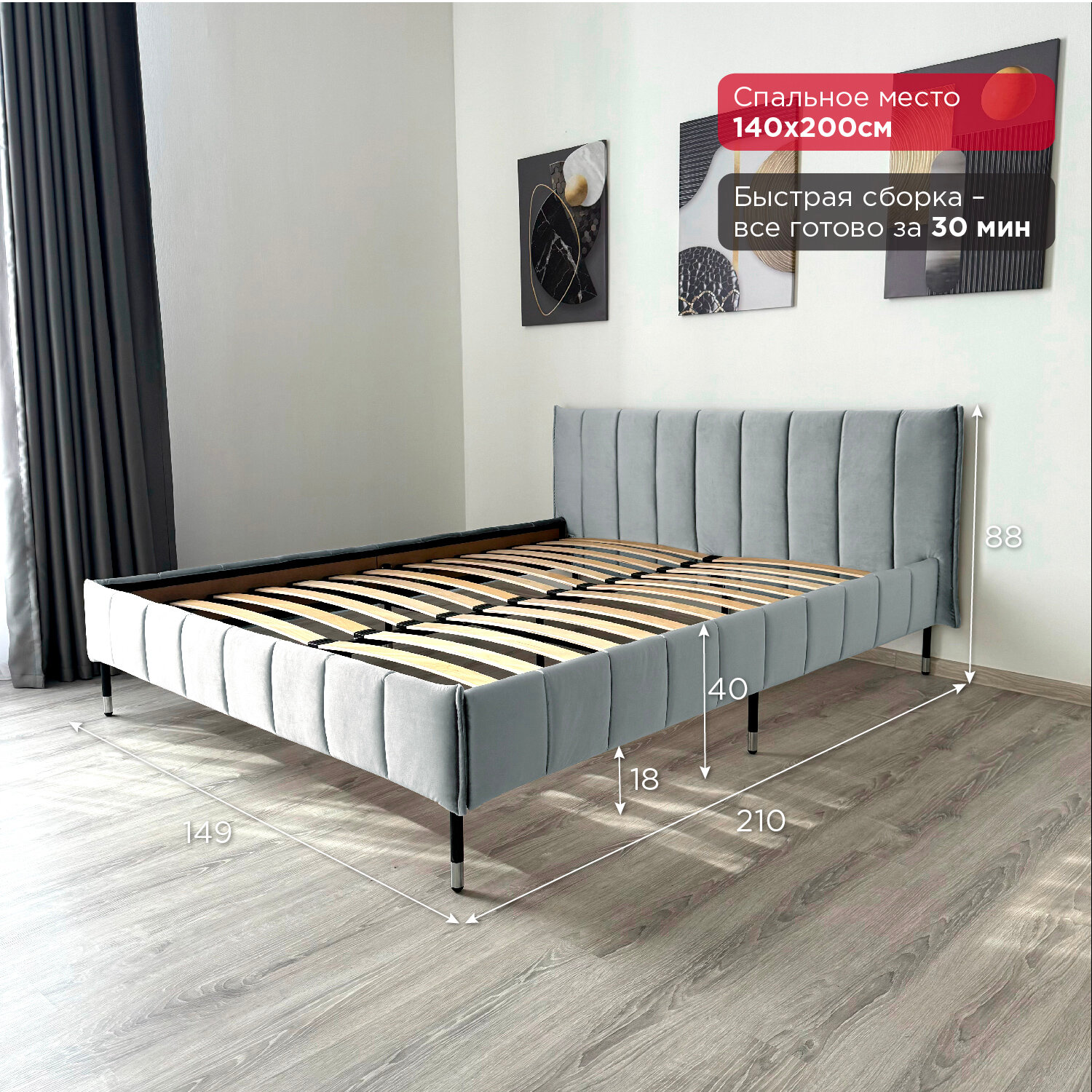 Кровать Redsofa Стелла серый Шайн / ножки хром 140х200 с ортопедическим основанием