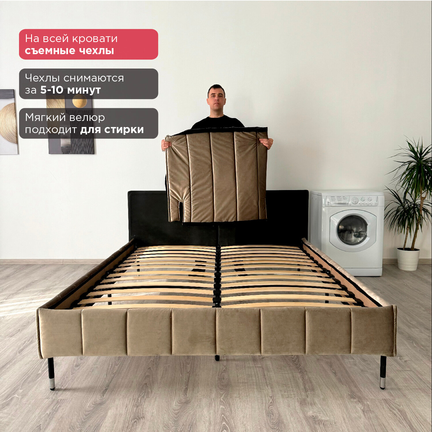 Кровать Redsofa Стелла темно-бежевый Шайн / ножки хром 140х200 с ортопедическим основанием
