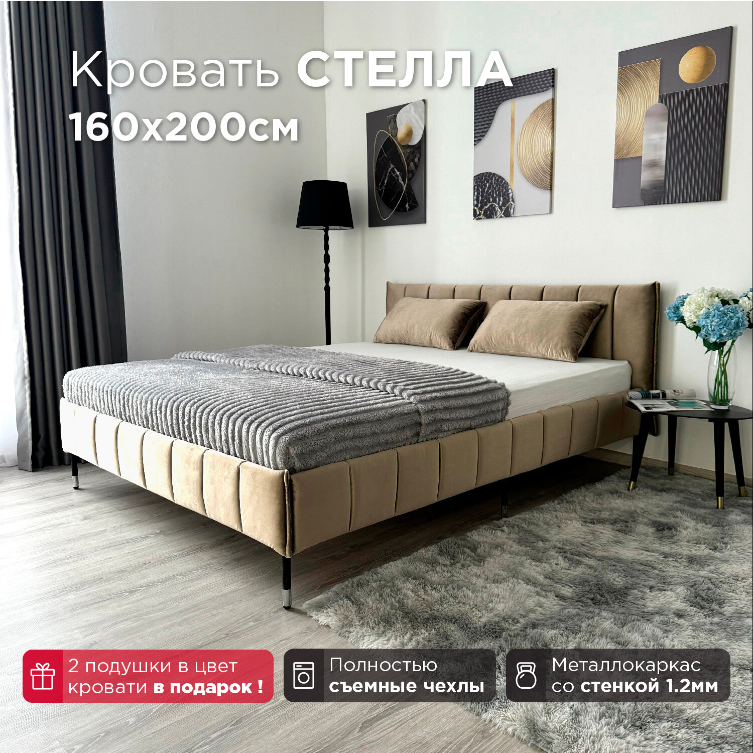 Кровать Redsofa Стелла бежевый Шайн / ножки хром 160х200 с ортопедическим основанием