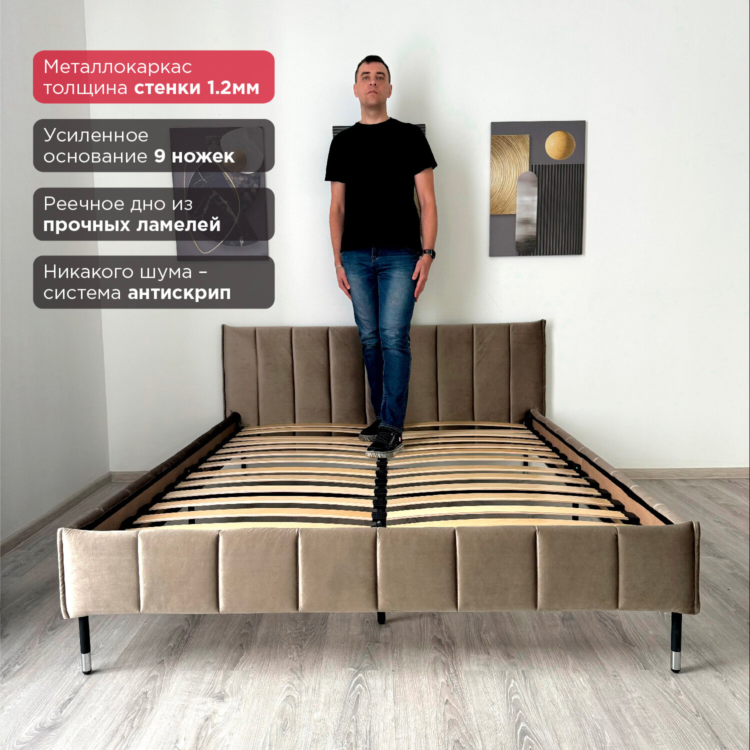 Купить Кровать Redsofa Стелла темно-бежевый Шайн / ножки хром 160х200 с ортопедическим основанием
