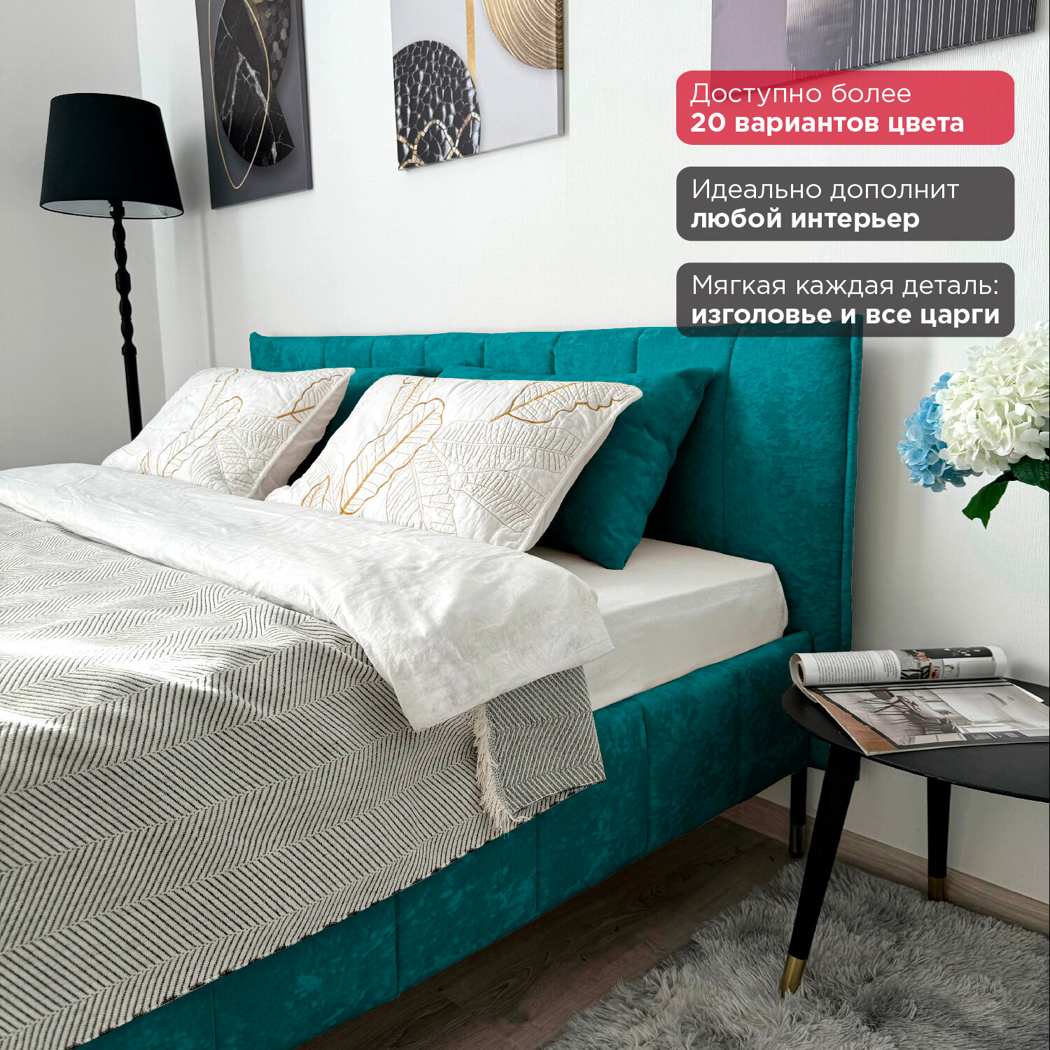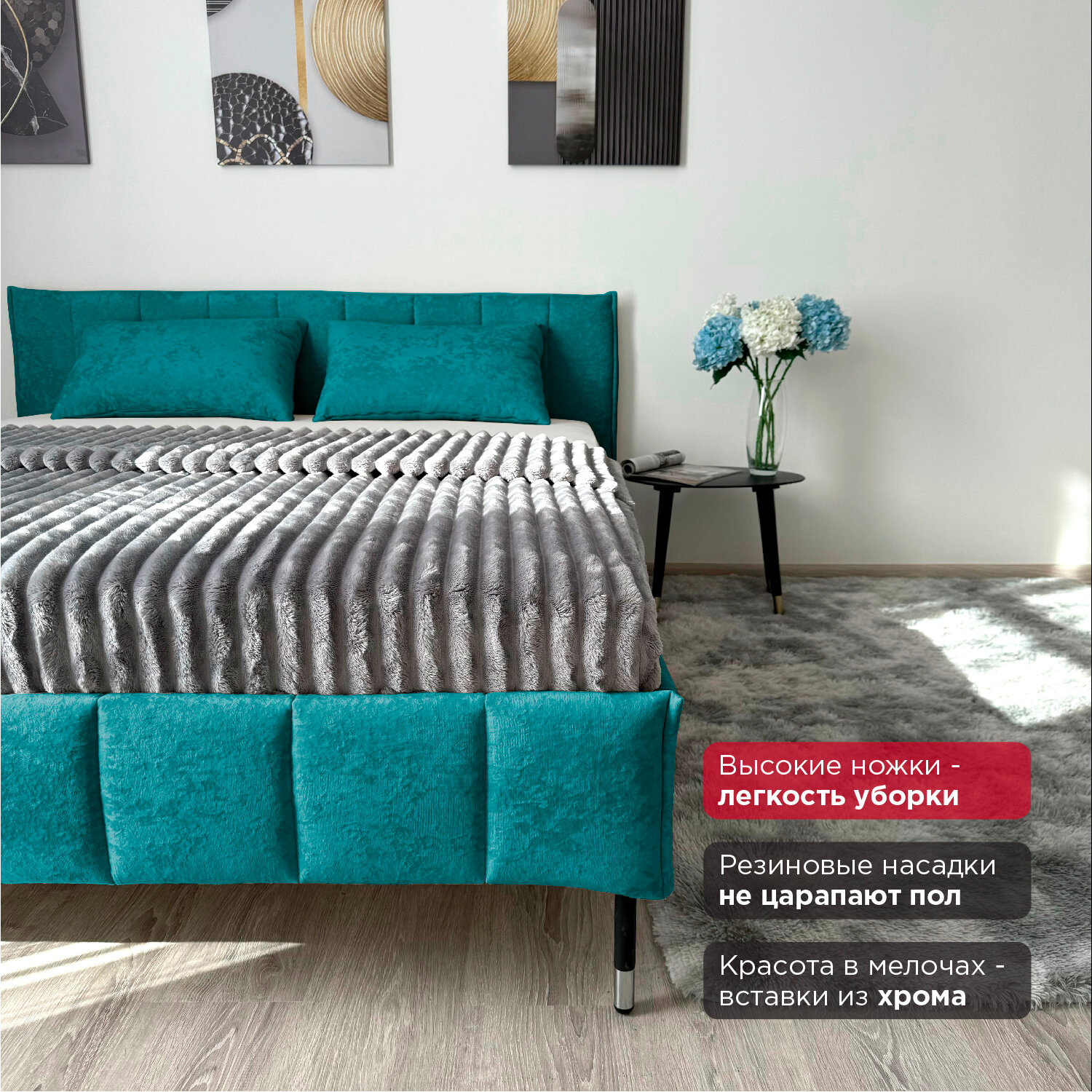 Кровать Redsofa Стелла бирюзовый Teddi / ножки хром 160х200 с ортопедическим основанием