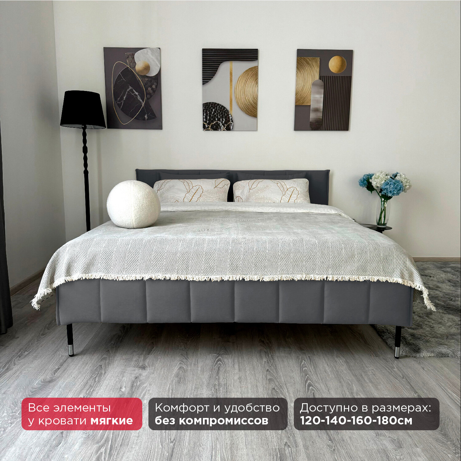 Кровать Redsofa Стелла графит Teddi / ножки хром 160х200 с ортопедическим основанием