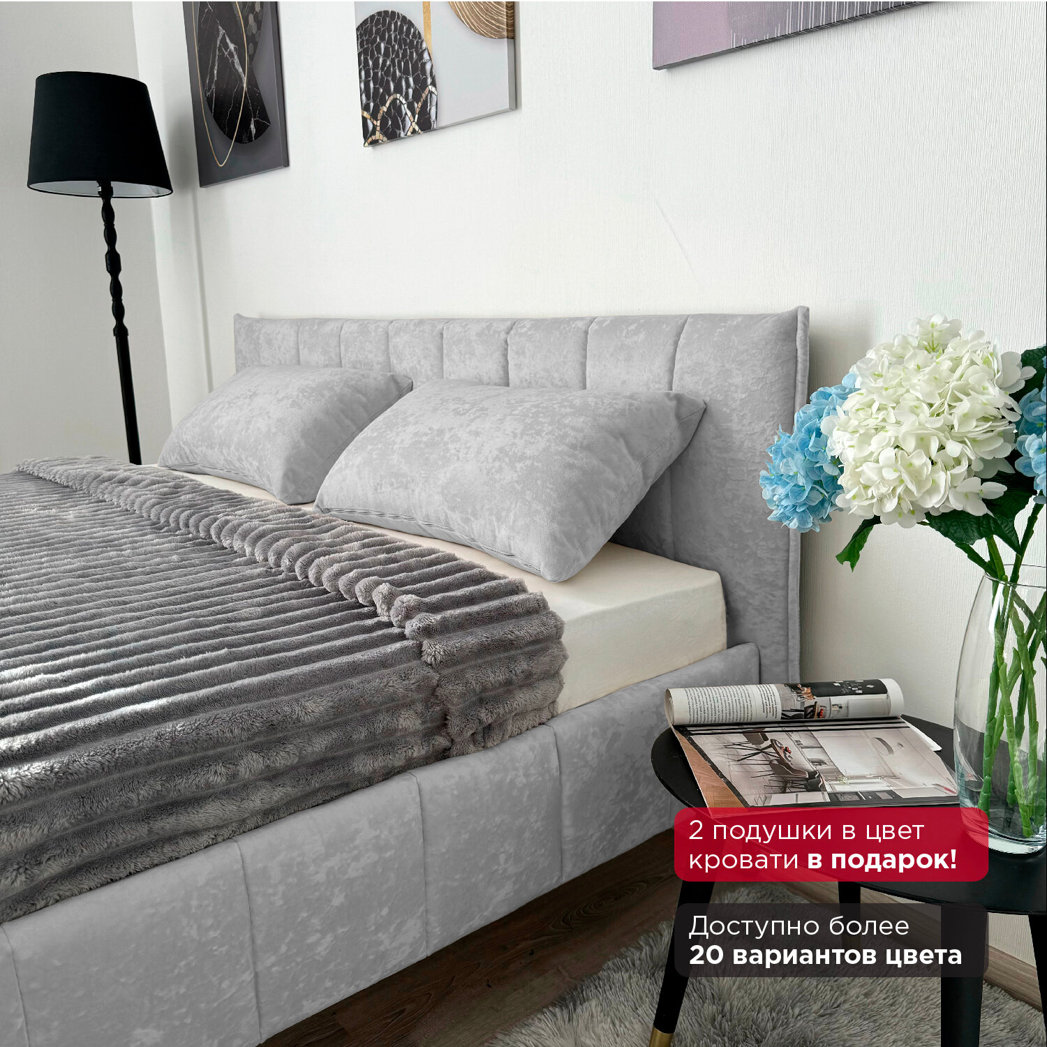 Кровать Redsofa Стелла серый Шайн / ножки хром 180х200 с ортопедическим основанием