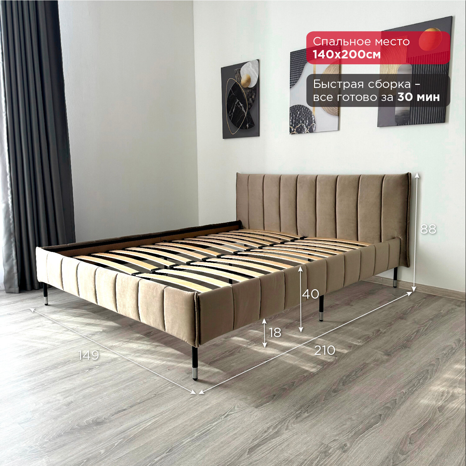 Кровать Redsofa Стелла бежевый Шайн / ножки хром 140х200 с ортопедическим основанием