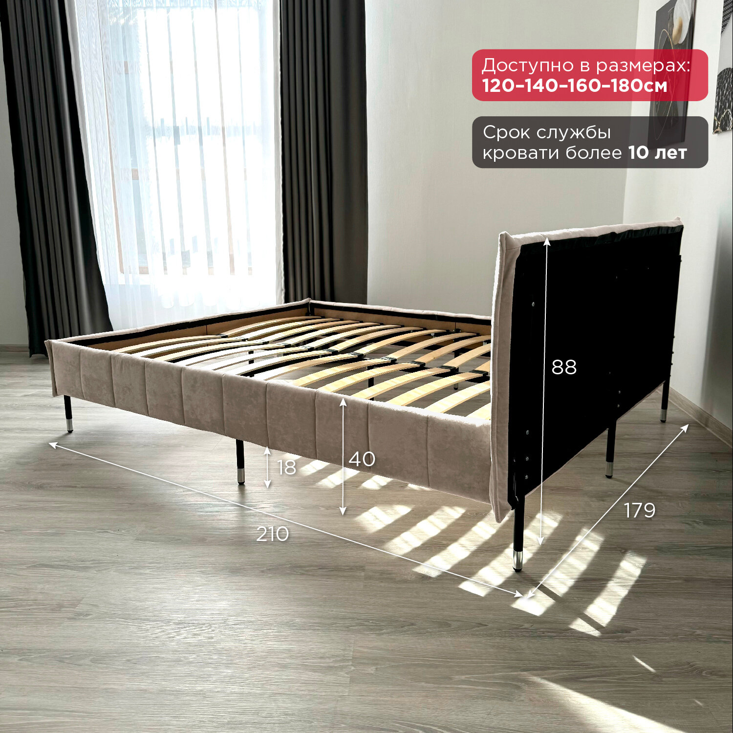 Кровать Redsofa Стелла темно-бежевый Шайн / ножки хром 140х200 с ортопедическим основанием