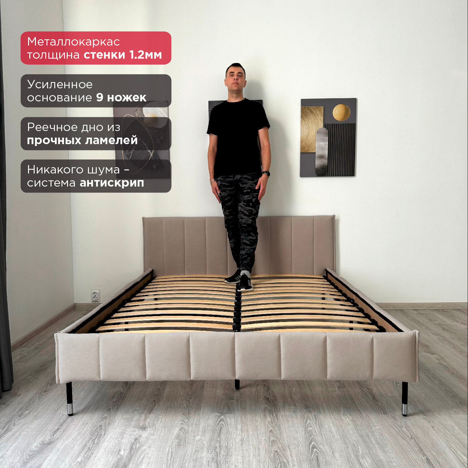 Кровать Redsofa Стелла темно-бежевый Шайн / ножки хром 160х200 с ортопедическим основанием