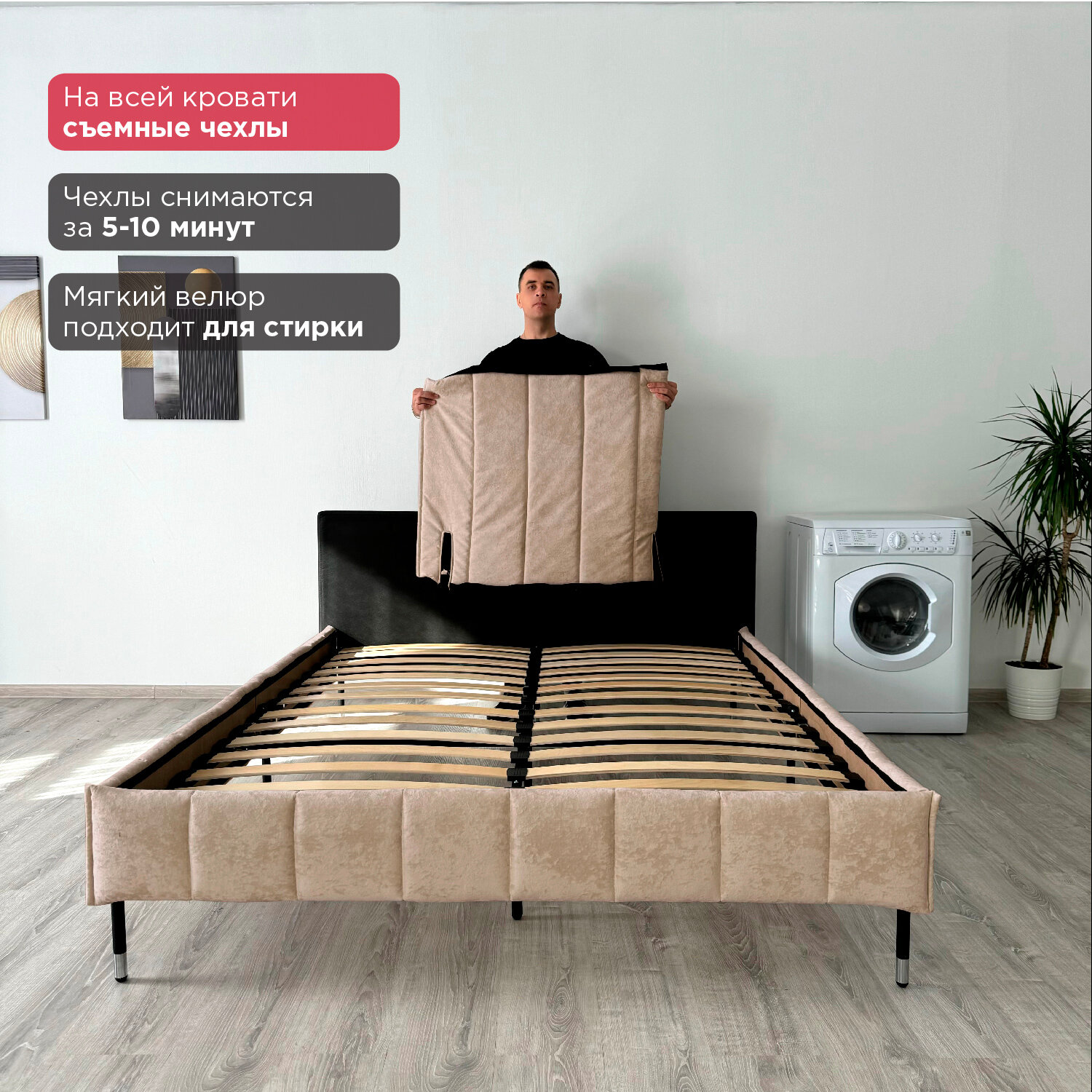 Кровать Redsofa Стелла темно-бежевый Шайн / ножки хром 160х200 с ортопедическим основанием