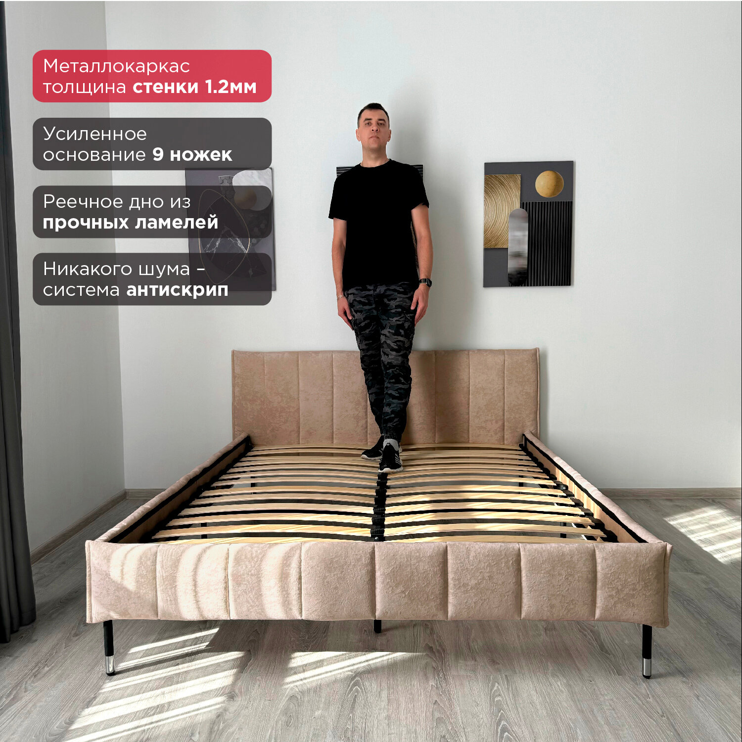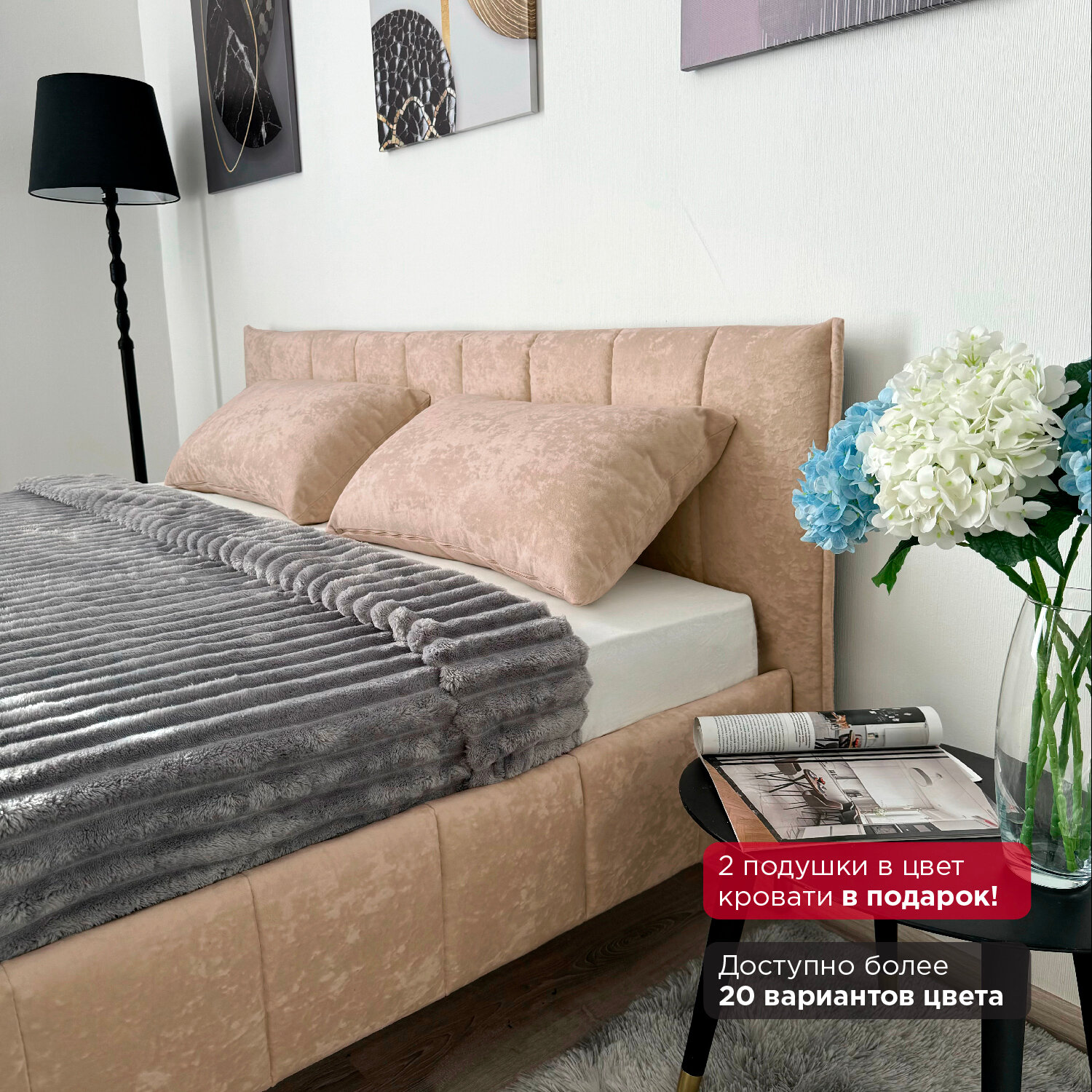 Кровать Redsofa Стелла бежевый Шайн / ножки хром 160х200 с ортопедическим основанием