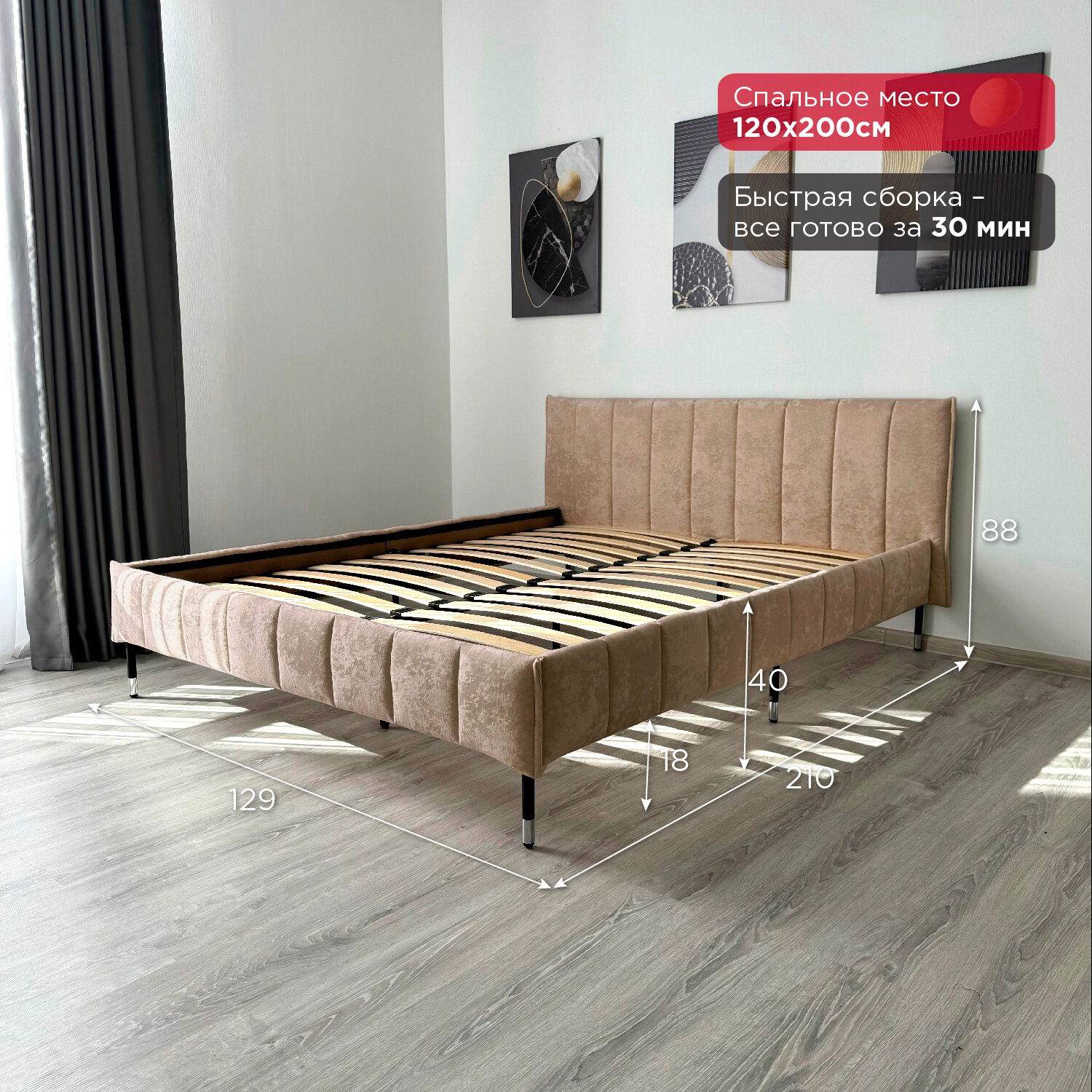 Кровать Redsofa Стелла темно-бежевый Шайн / ножки хром 120х200 с ортопедическим основанием