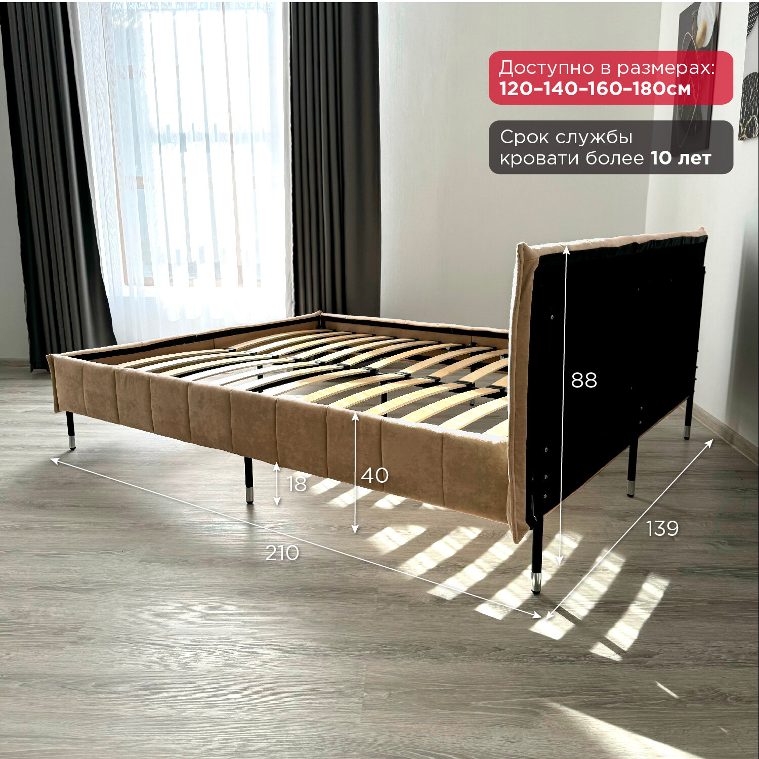 Кровать Redsofa Стелла темно-бежевый Шайн / ножки хром 140х200 с ортопедическим основанием