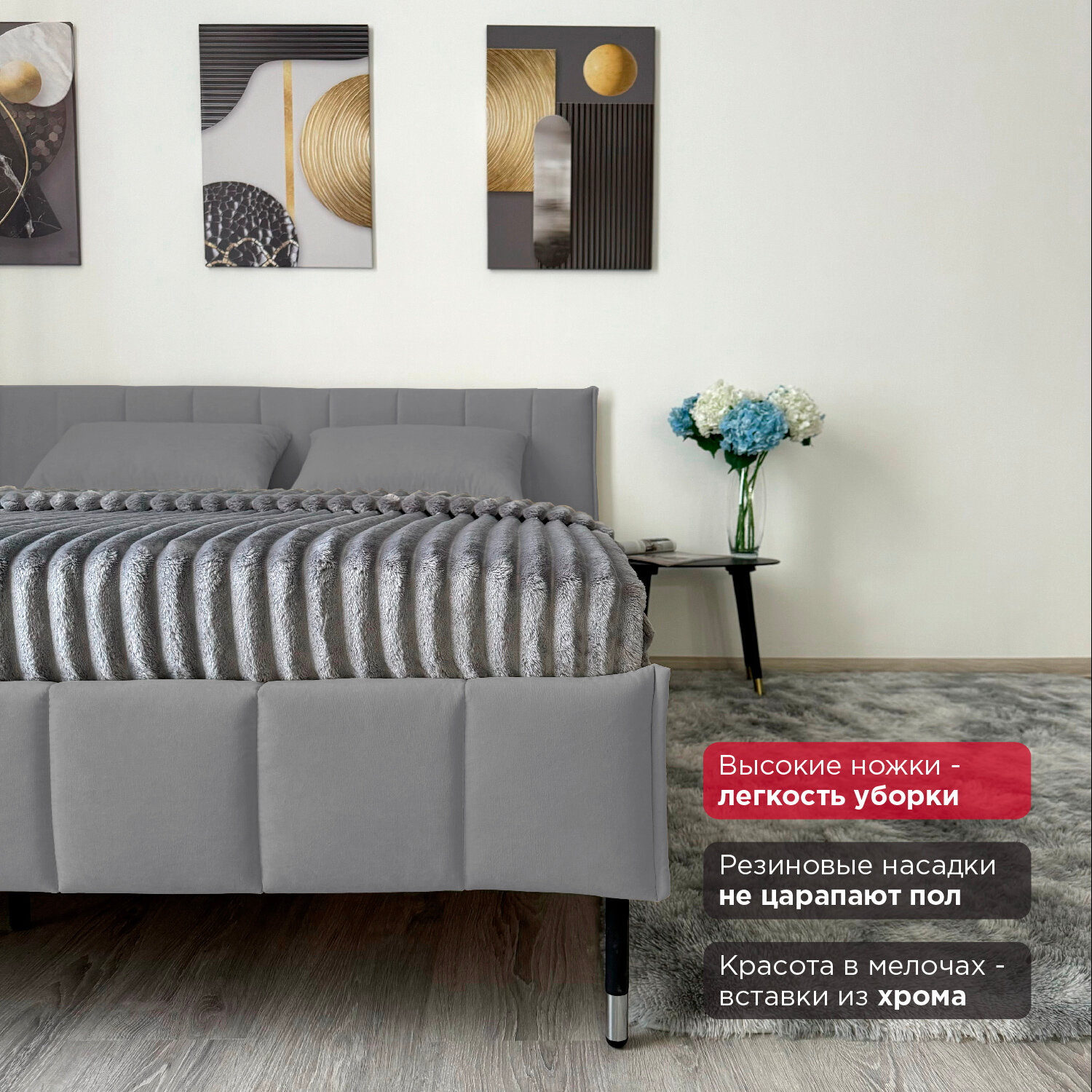 Кровать Redsofa Стелла серый Шайн / ножки хром 180х200 с ортопедическим основанием