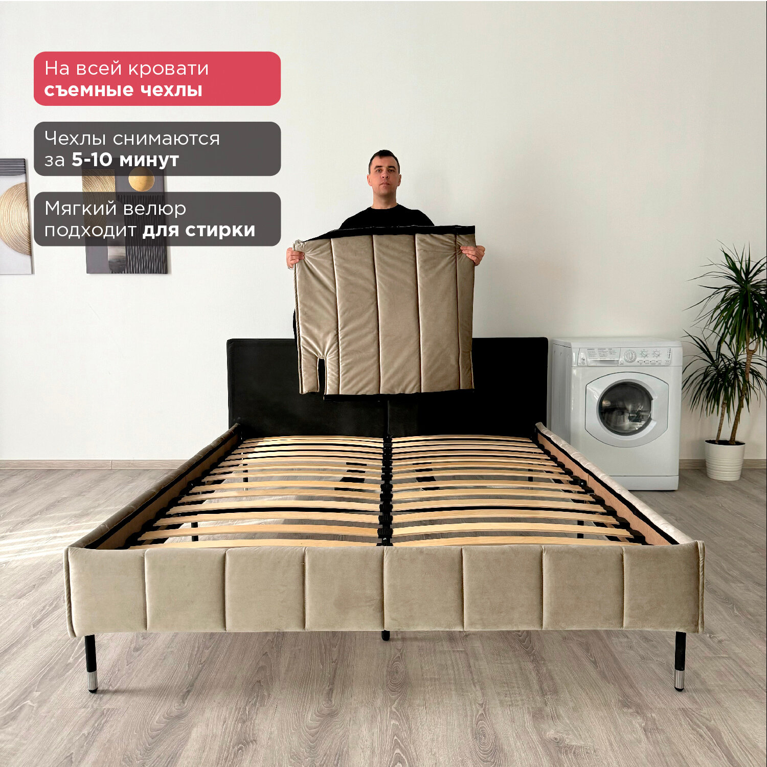 Кровать Redsofa Стелла темно-бежевый Шайн / ножки хром 140х200 с ортопедическим основанием