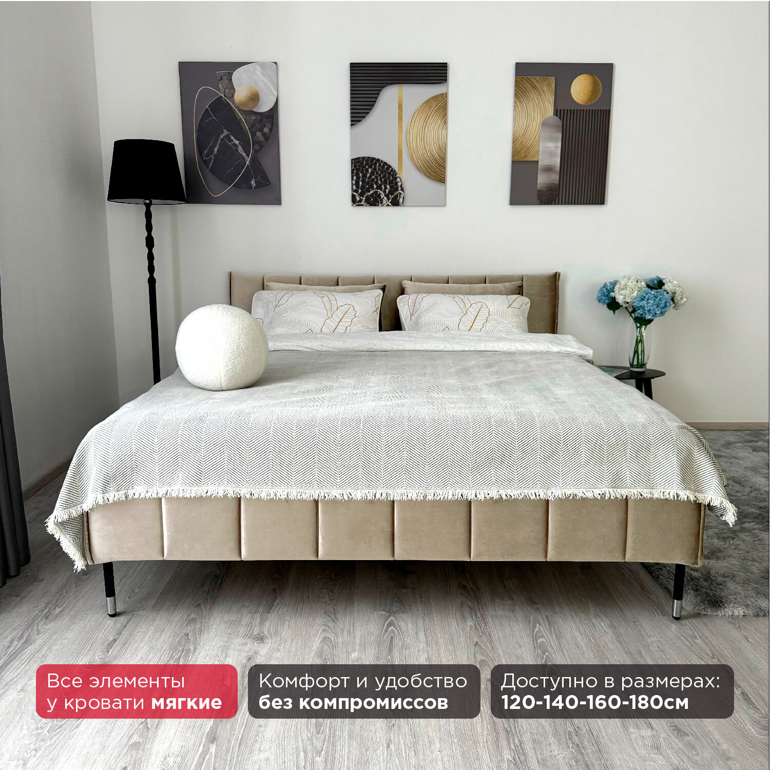 Кровать Redsofa Стелла бежевый Шайн / ножки хром 140х200 с ортопедическим основанием
