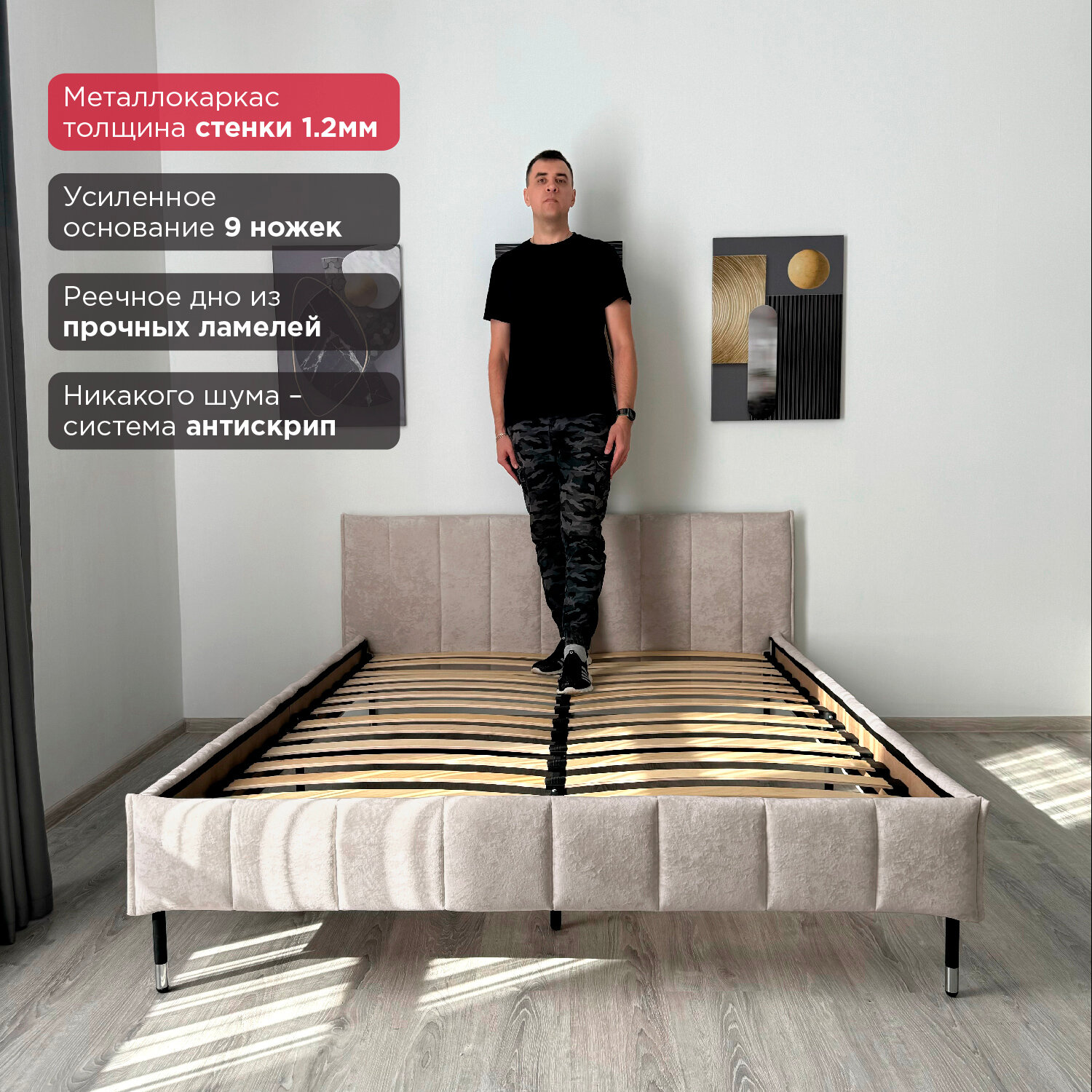 Кровать Redsofa Стелла бежевый Шайн / ножки хром 160х200 с ортопедическим основанием
