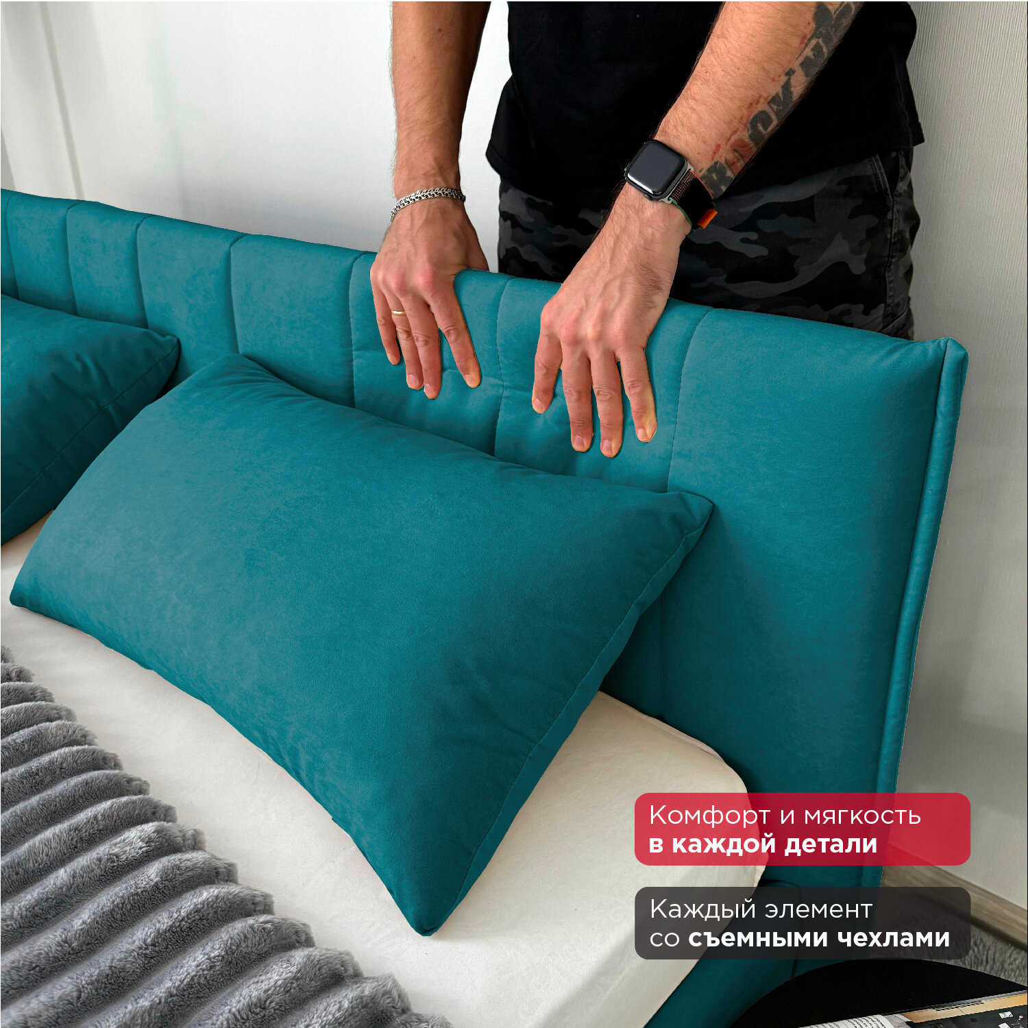 Кровать Redsofa Стелла бирюзовый Teddi / ножки хром 140х200 с ортопедическим основанием
