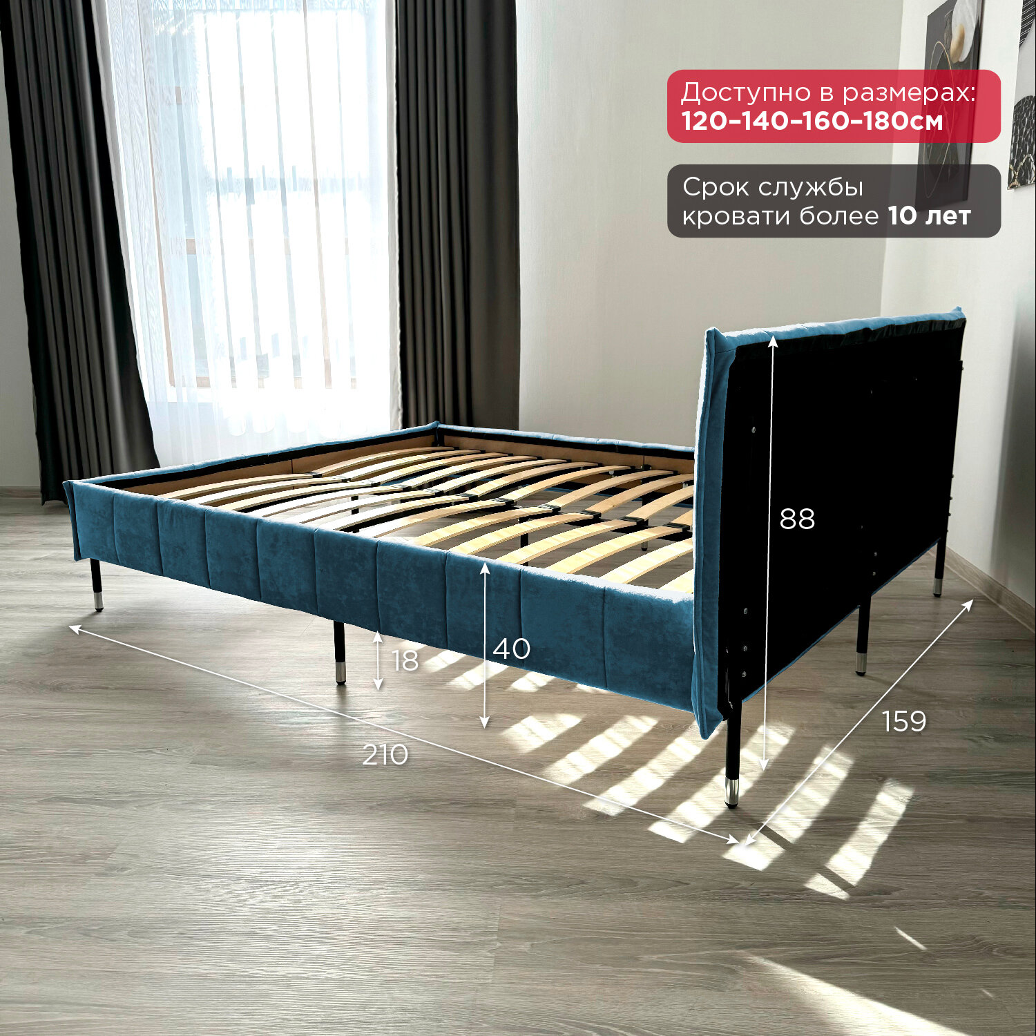Кровать Redsofa Стелла аквамарин Ocean / ножки хром 140х200 с ортопедическим основанием