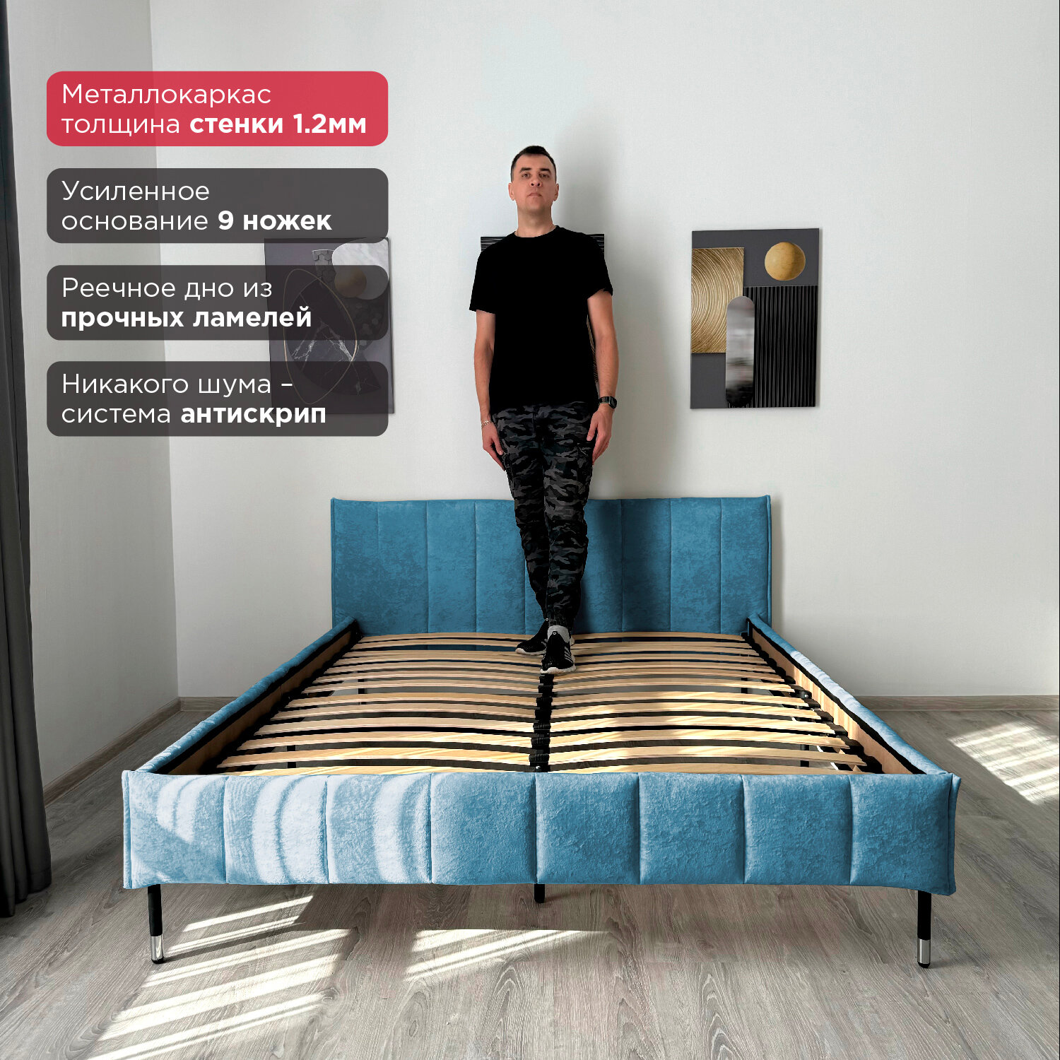 Кровать Redsofa Стелла бирюзовый Teddi / ножки хром 160х200 с ортопедическим основанием