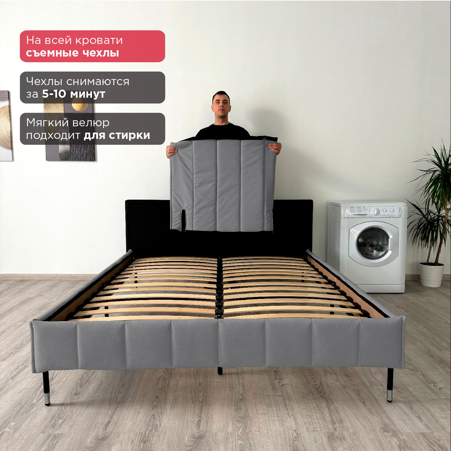 Кровать Redsofa Стелла графит Teddi / ножки хром 160х200 с ортопедическим основанием