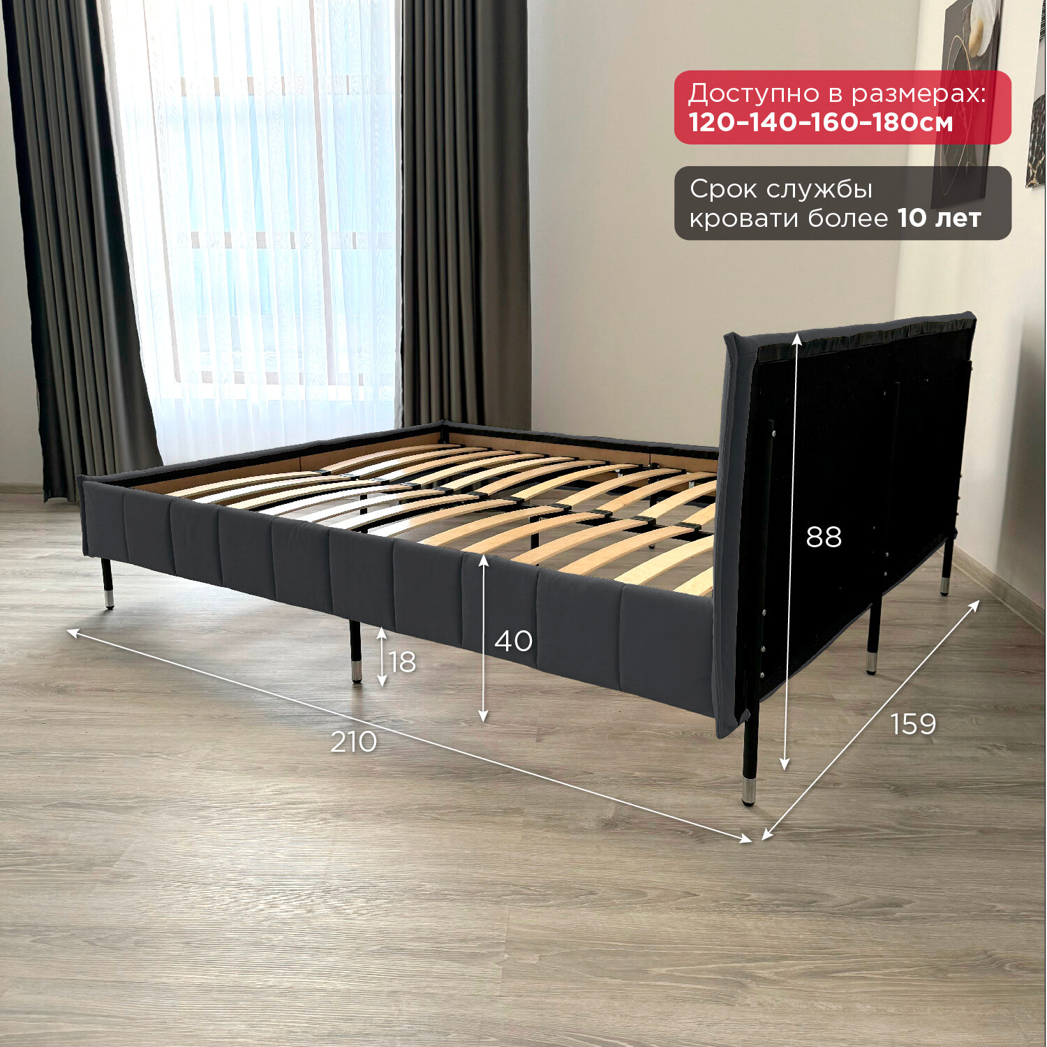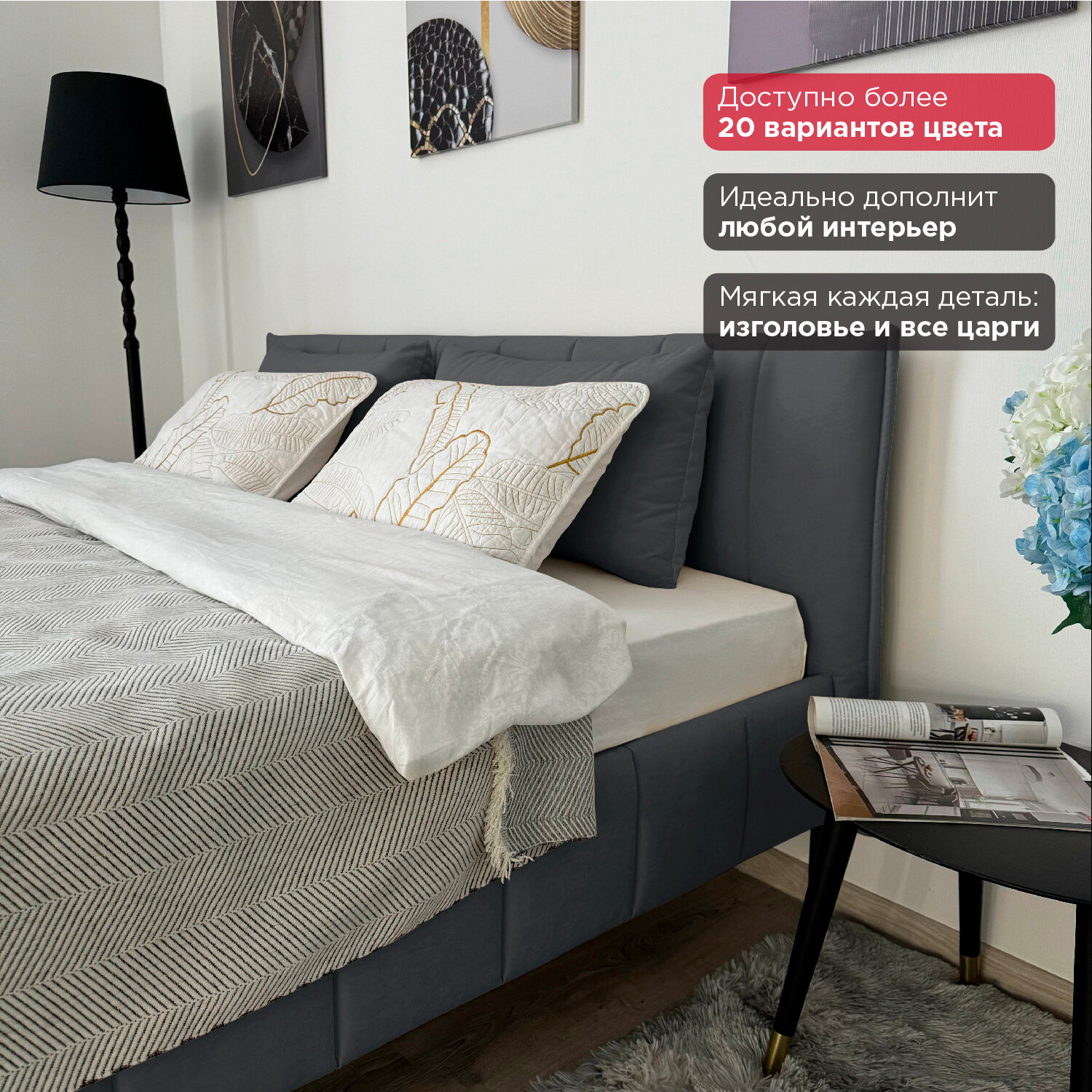 Кровать Redsofa Стелла графит Teddi / ножки хром 160х200 с ортопедическим основанием