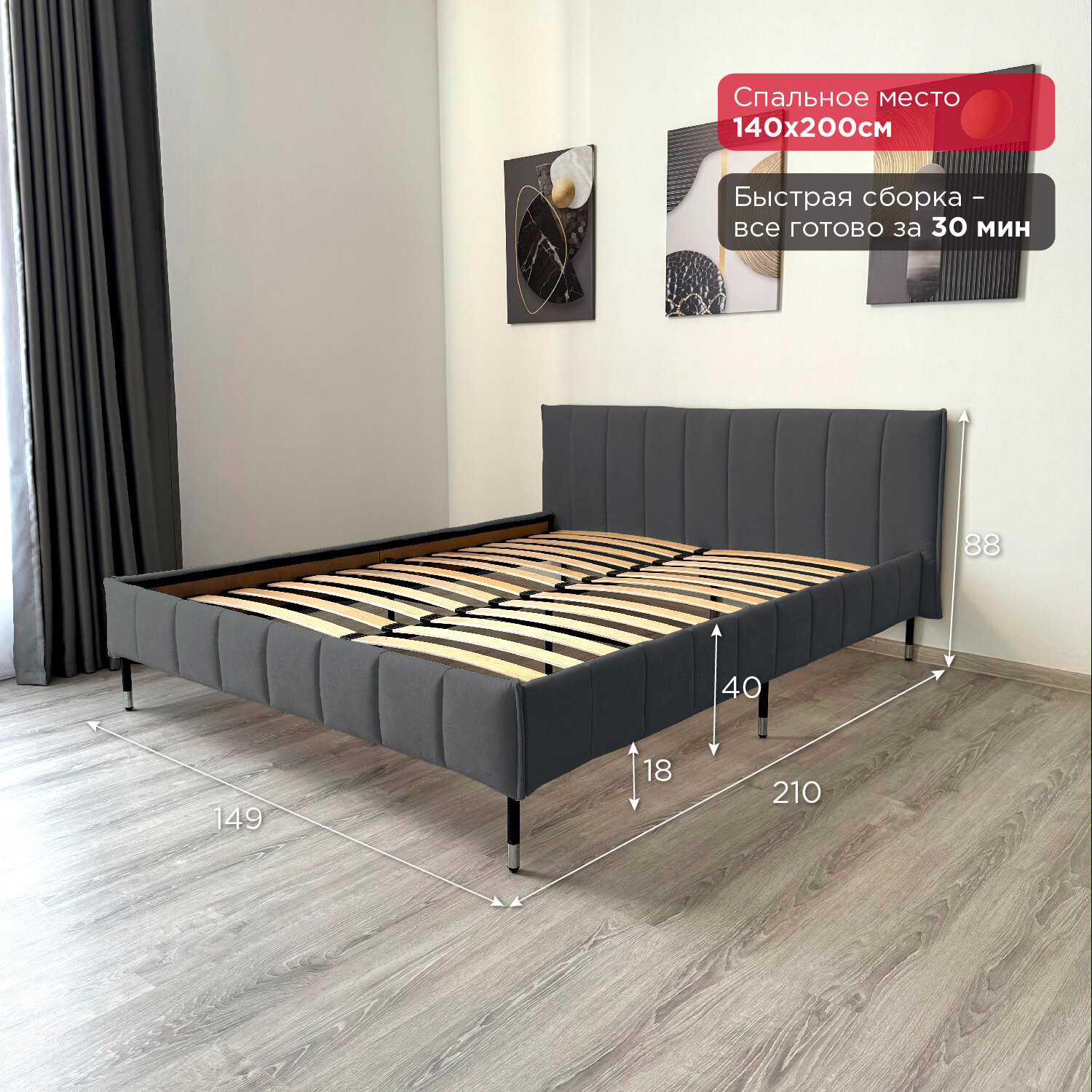 Купить Кровать Redsofa Стелла графит Teddi / ножки хром 140х200 с ортопедическим основанием