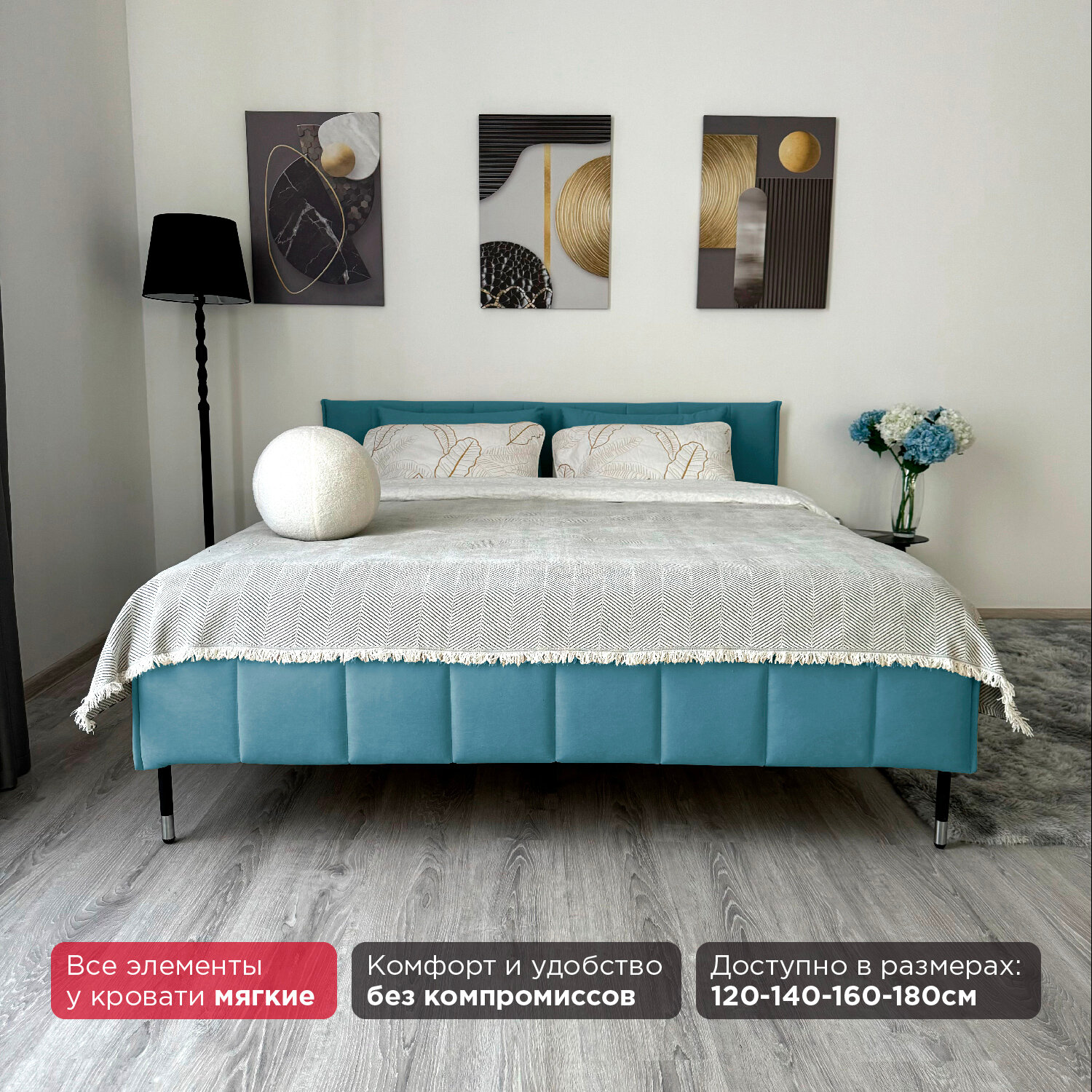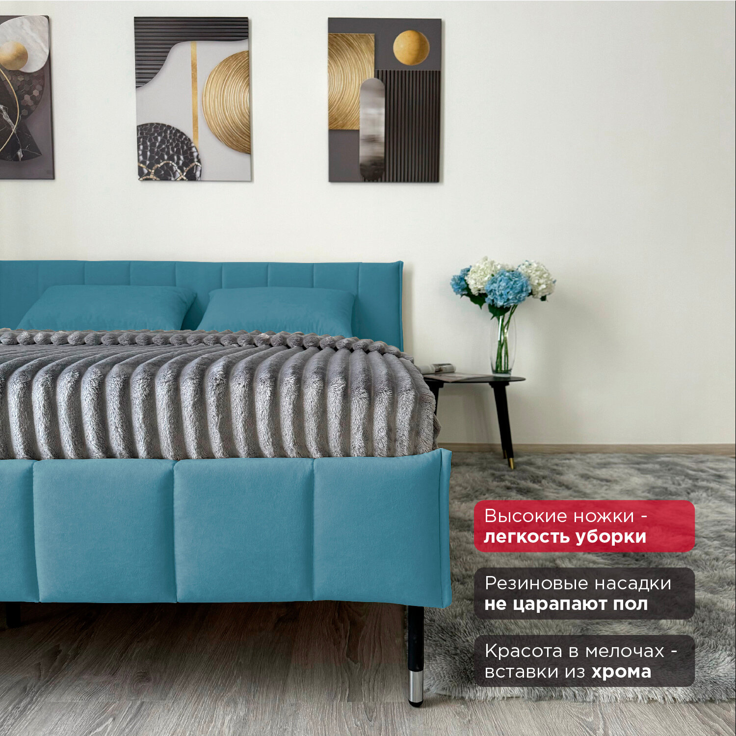 Кровать Redsofa Стелла аквамарин Ocean / ножки хром 180х200 с ортопедическим основанием