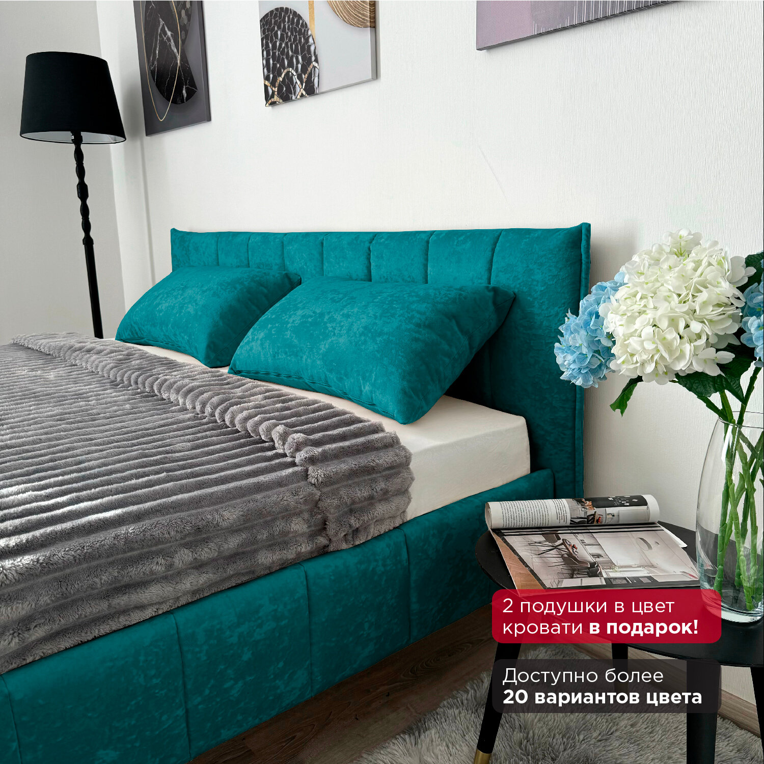 Кровать Redsofa Стелла бирюзовый Teddi / ножки хром 160х200 с ортопедическим основанием