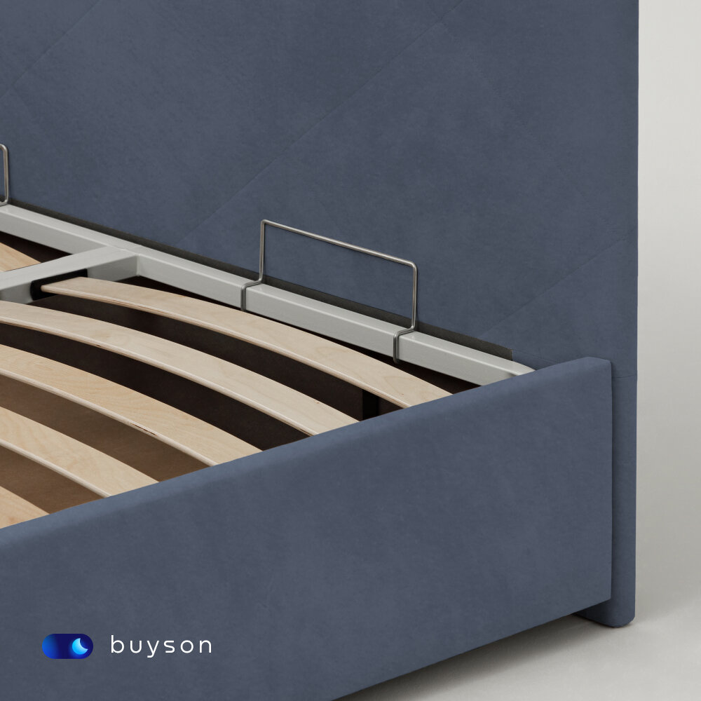 Двуспальная кровать buyson BuyRest 160х200 см, с подъемным механизмом, серо-синий, микровелюр