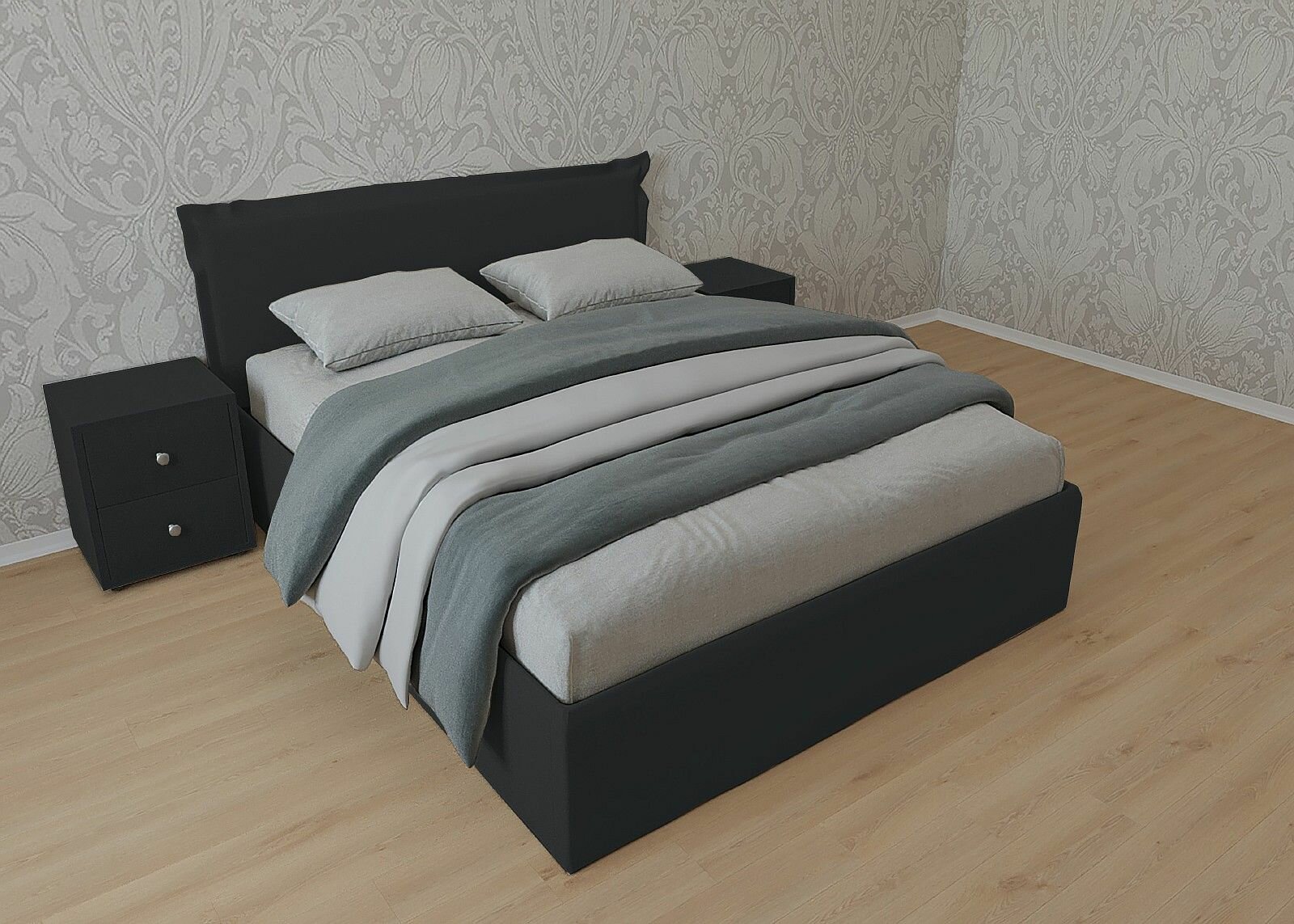 Двуспальная кровать Дели с Матрасом 180x200 основание настил ДСП велюр черный