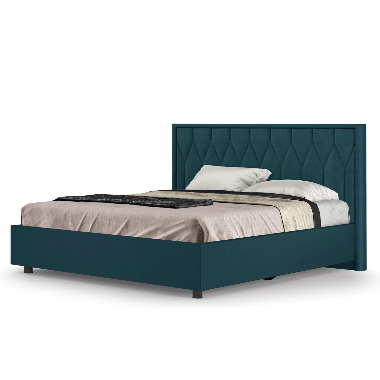 Двуспальная кровать 10 мягкая с подъёмным механизмом 180х200 темно-синяя Кураж