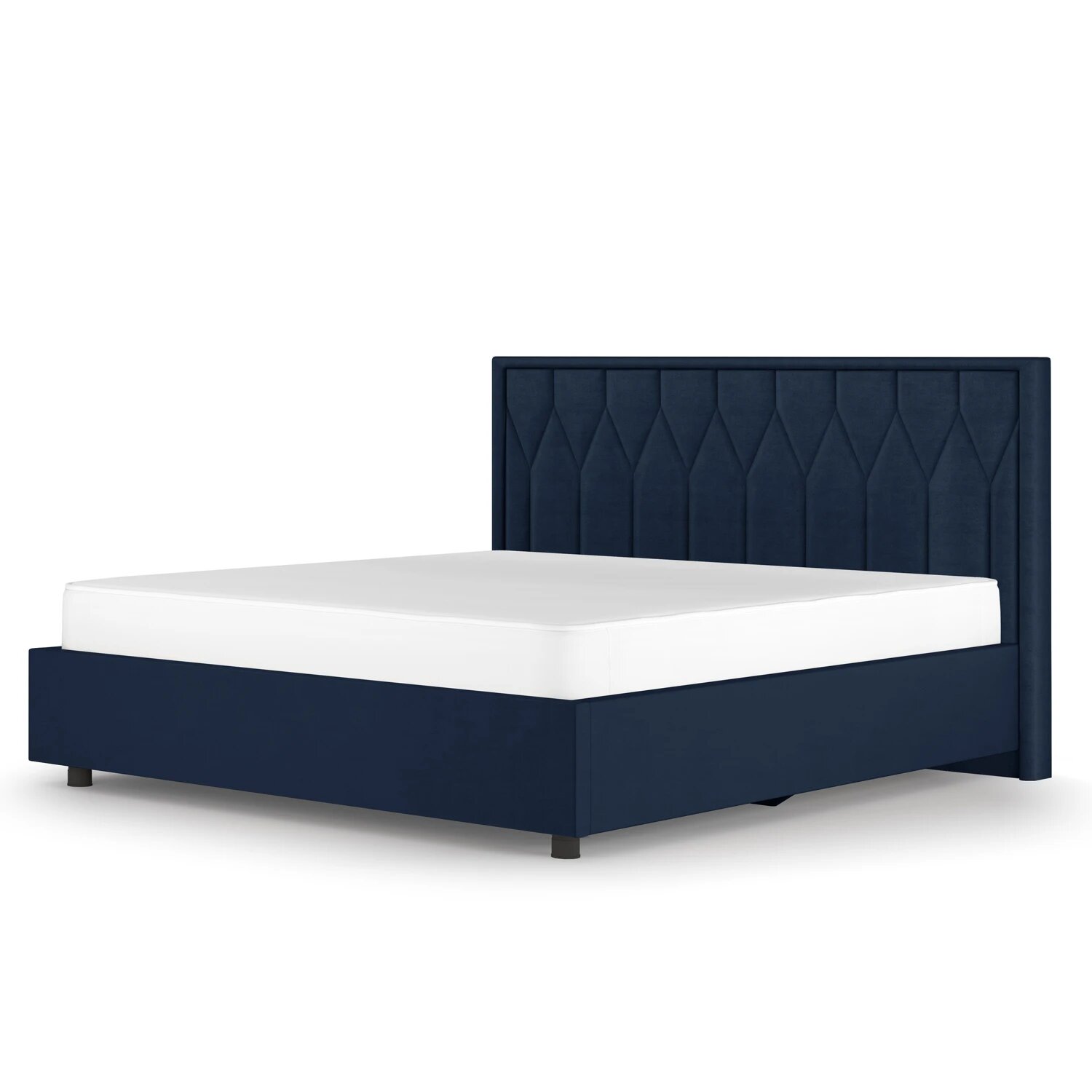 Купить Двуспальная кровать 10 мягкая с подъёмным механизмом 160х200 темно-синяя Кураж