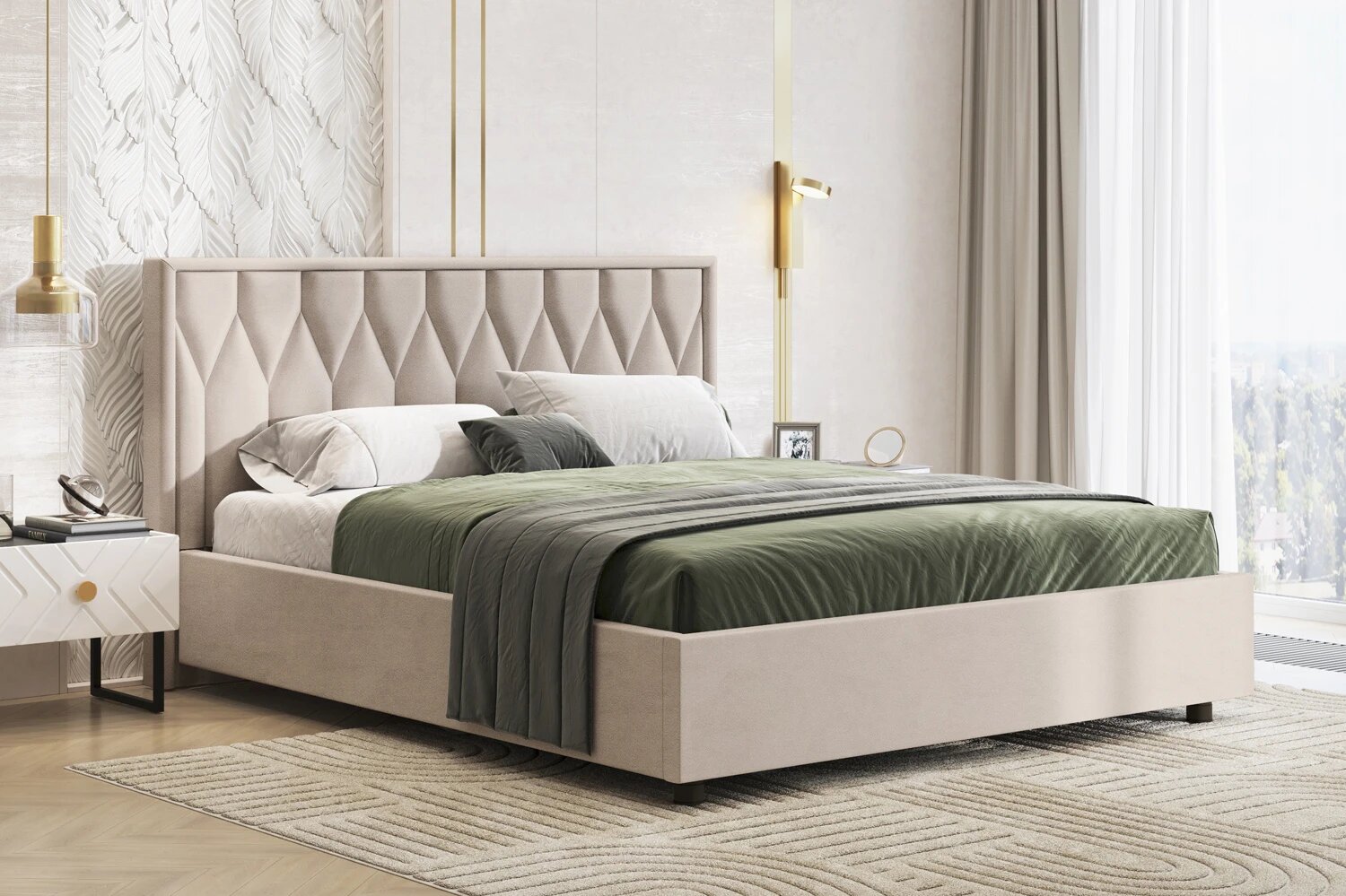 Двуспальная кровать 10 мягкая с подъёмным механизмом 160х200 латте Кураж