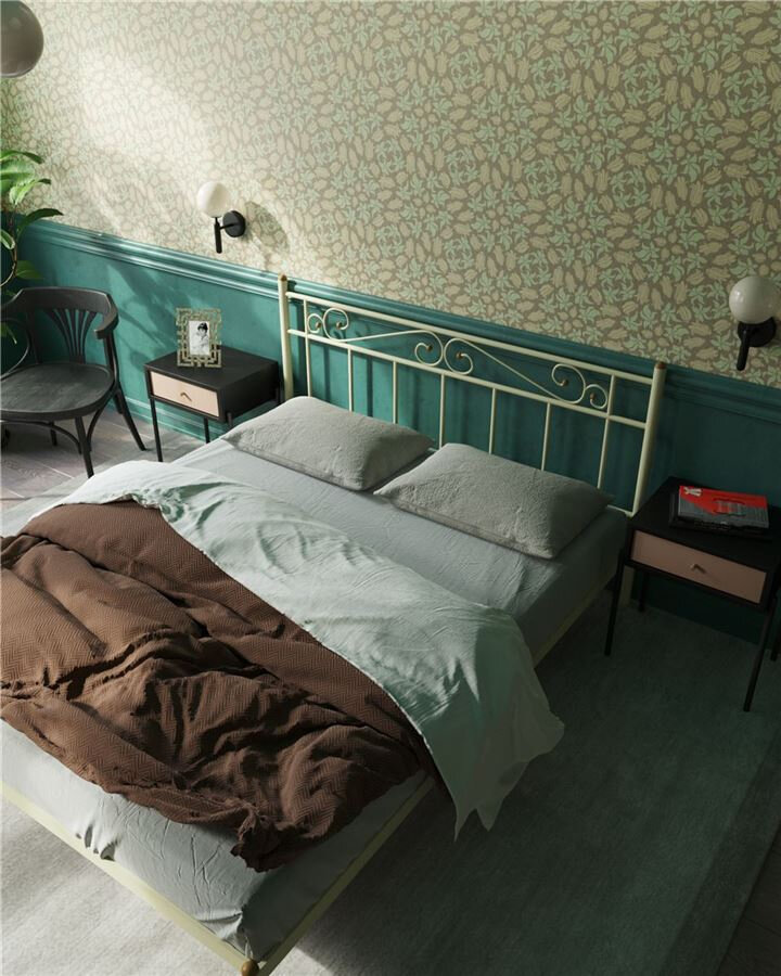 Кровать двуспальная Франческа без изножья 140х200 см, металлическая, с основанием, цвет бежевый