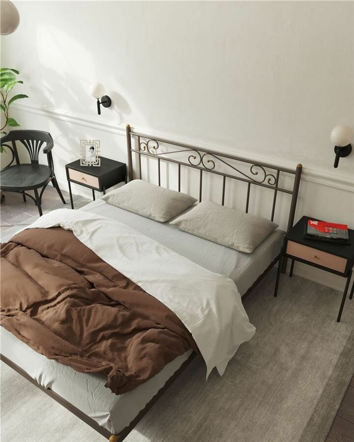 Кровать "Франческа" без изножья (160х200/ноги металл/цвет Коричневый бархат)