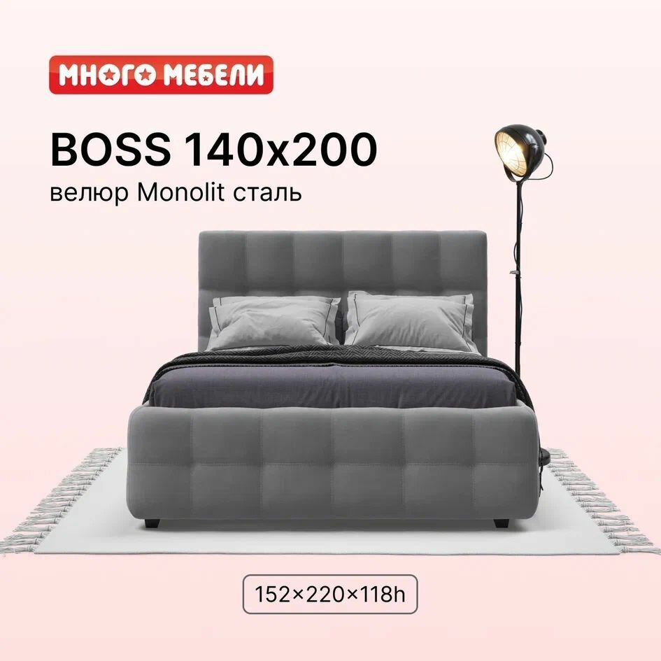 Двуспальная кровать Босс, с подъемным механизмом, велюр Monolit серый, спальное место 140х200 см