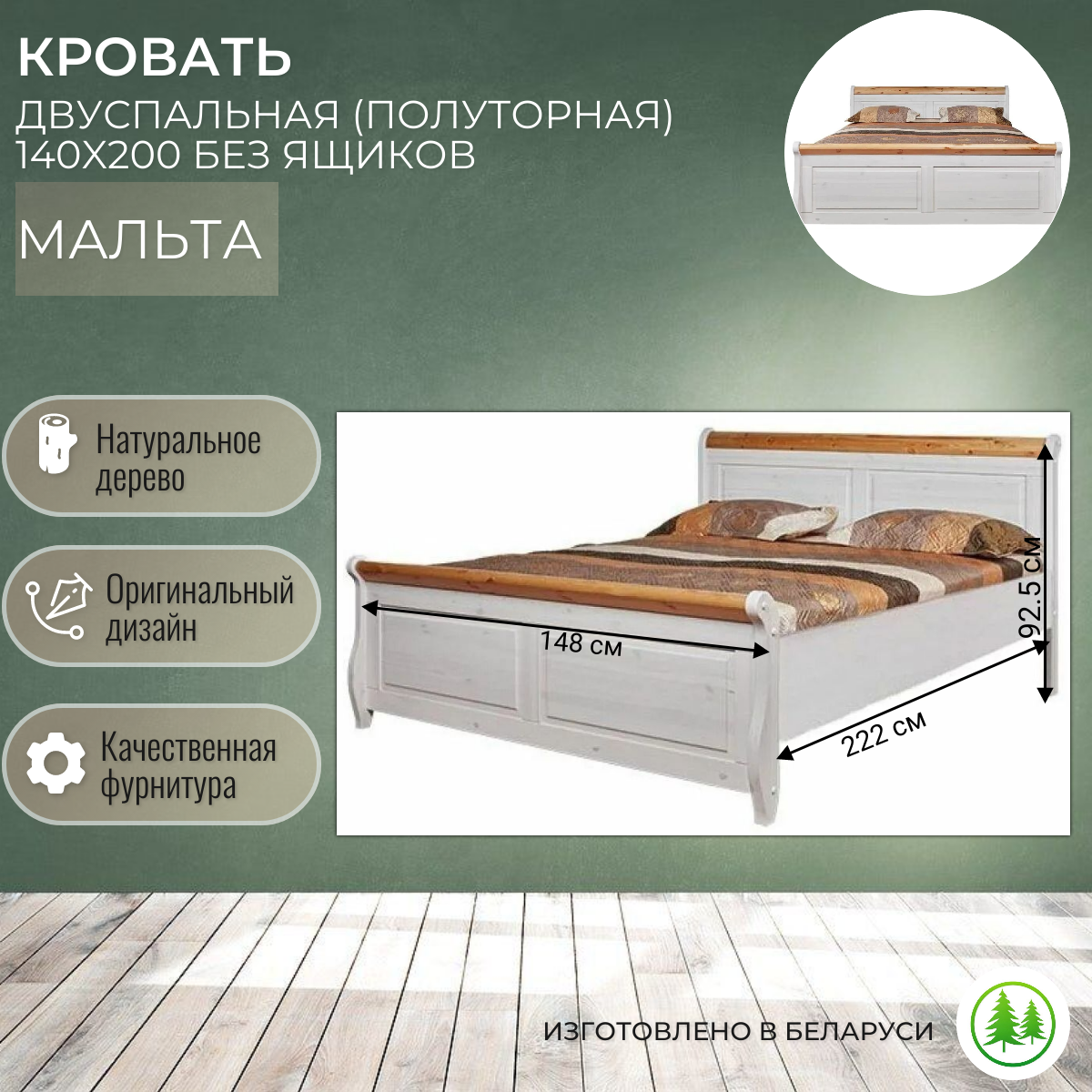 Кровать деревянная полуторная белый воск/ антик Мальта 140x200 без ящиков интересное: