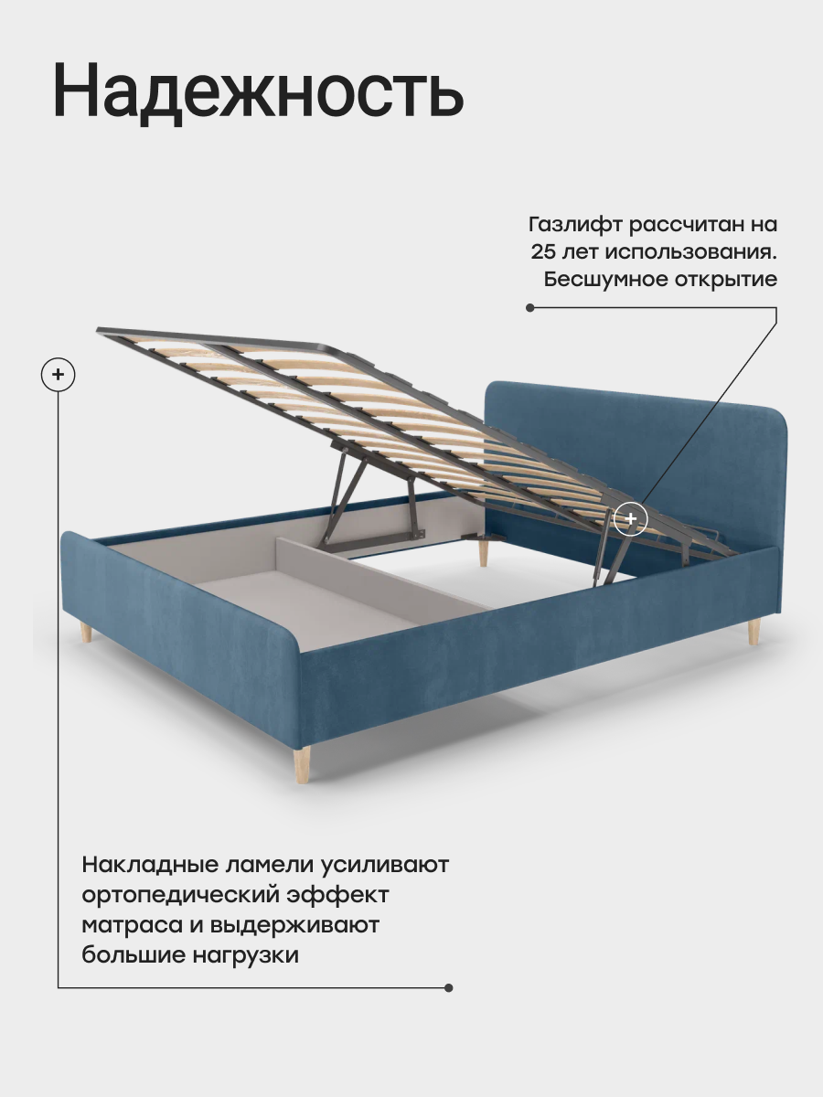 Кровать Hakkuna Matata, двуспальная, с подъемным механизмом, 160x200х75 см, голубая