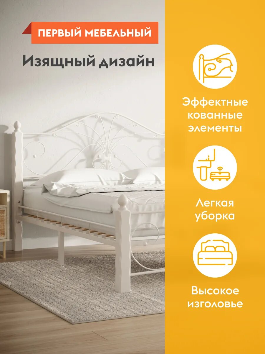 Кровать односпальная металлическая Синди 120х200 см, Кремово-белый металл