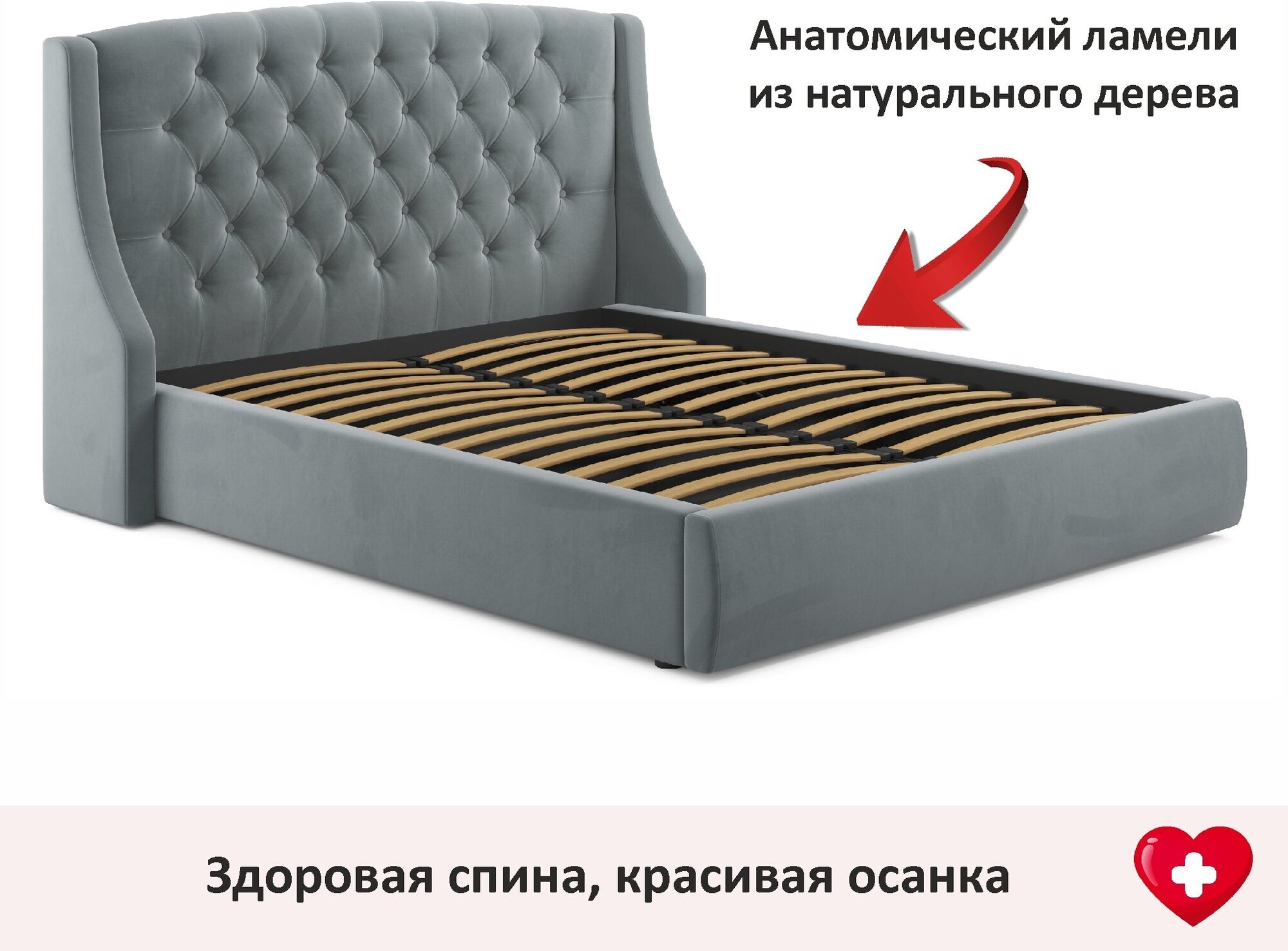 СохранитьДвуспальная кровать Stefani 1600 cерая Zeppelin с подъемным механизмом, 160х200, мягкая из велюра, ортопедическое основание-ламели интересное:
